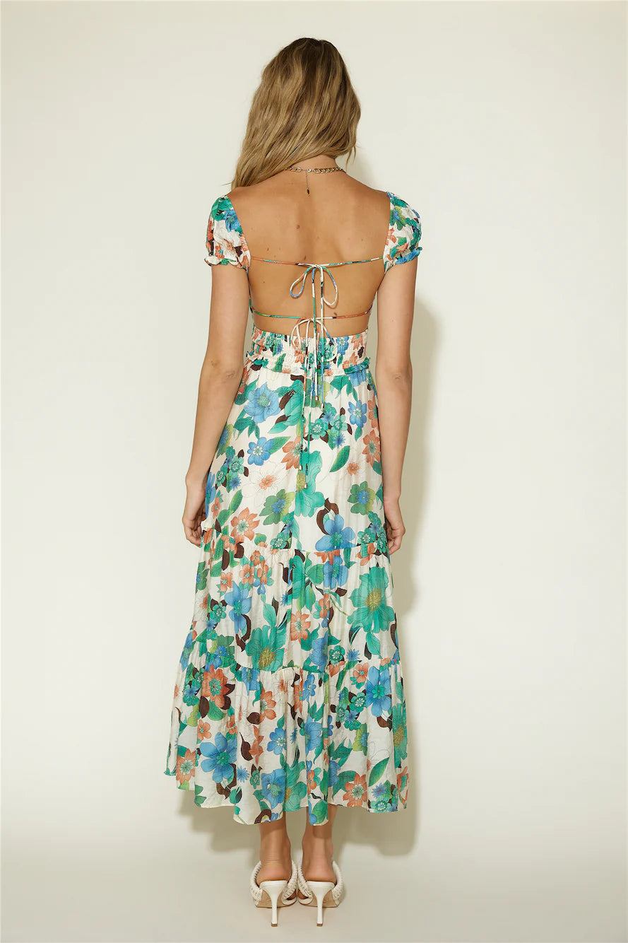 Feel the sand between your toes and the warm sun on your skin in the Afternoon Glow Maxi Dress. Styling yours with lace-up sandals and gold adornments.