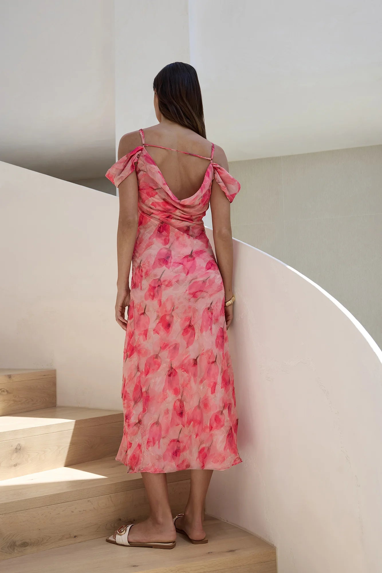 Ready to make a statement? This Aurora Skies Off Shoulder Maxi Dress will do just that! Featuring a cowl neckline and a gorgeous printed design. Style with heels for a fancy party and steal the attention.