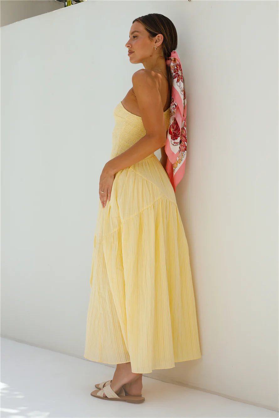 The Beaming Hues One Shoulder Maxi Dress in Yellow exudes a sunlit radiance that perfectly complements the golden sands and azure waters of your dreamy holiday destination. Draped in this vibrant dress, you effortlessly blend with the enchanting surroundings.