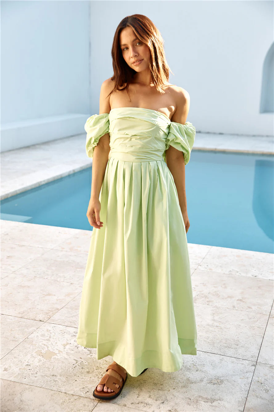 The Bella Off Shoulder Maxi Dress in Green is a timeless classic dress for any dressy event. It exudes elegance and effortless especially when paired with while heels and dainty gold adornments. Style with the .