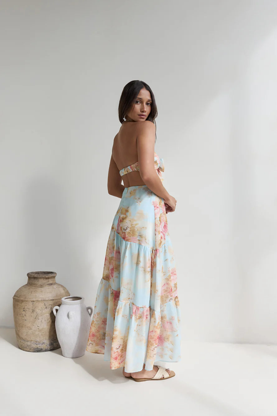 Float through your day in the Beyond The Glow Strapless Maxi Dress. Featuring a soft print, tied neckline, and a flowy skirt that moves with you, this piece is the epitome of romantic charm. The elastic back and inner grip provide a secure fit, perfect for garden parties, winery dates, or dreamy afternoons in the sun. Style with loose waves and strappy sandals to complete the look.