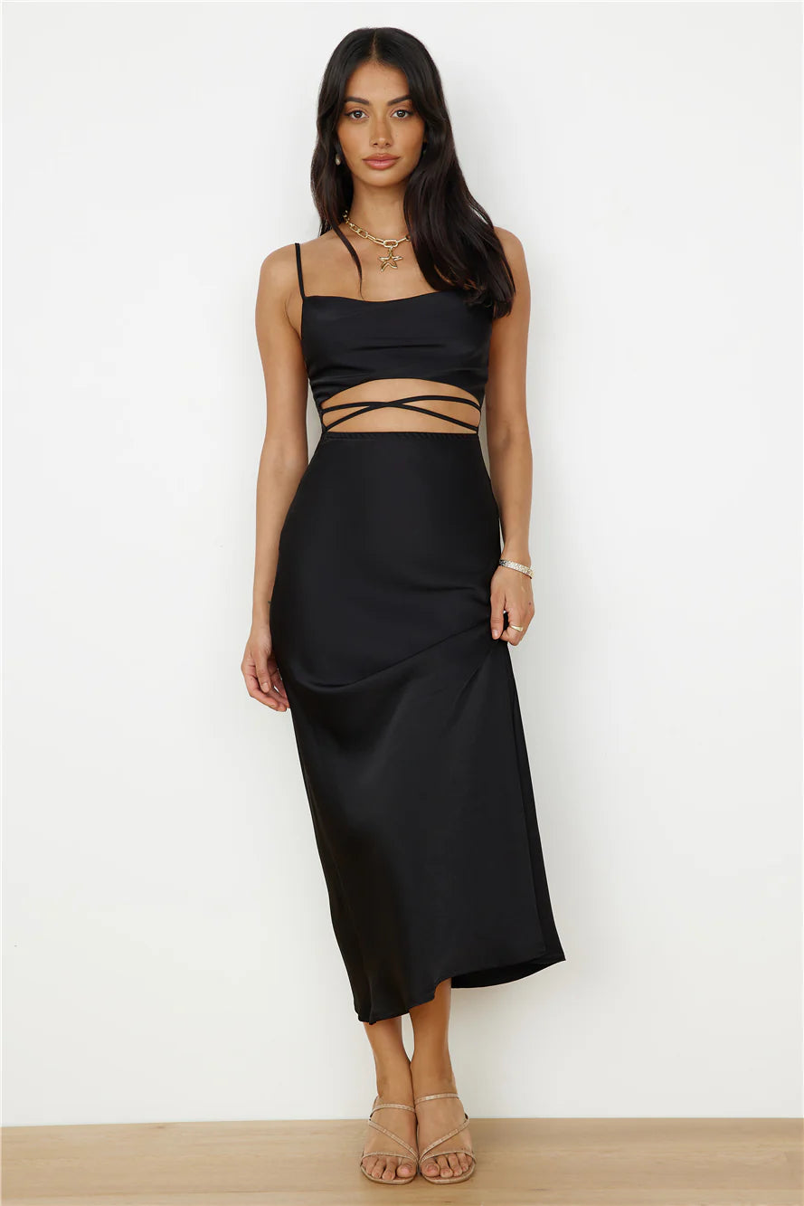 Enjoy golden hour with a champagne in hand in our Carmela Maxi Dress. We'll be styling ours with neutral block heels and gold adornments for our next event by the ocean.