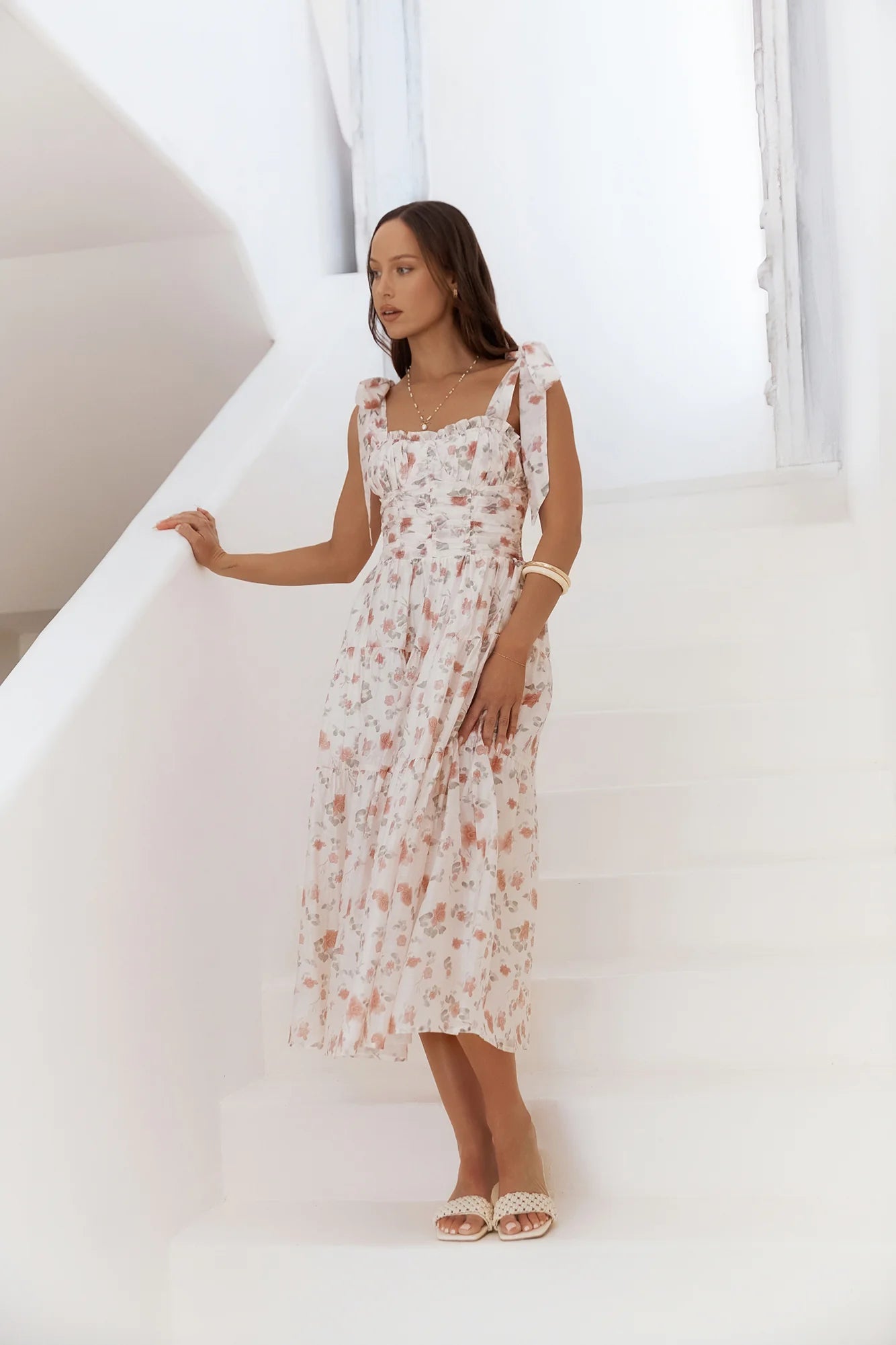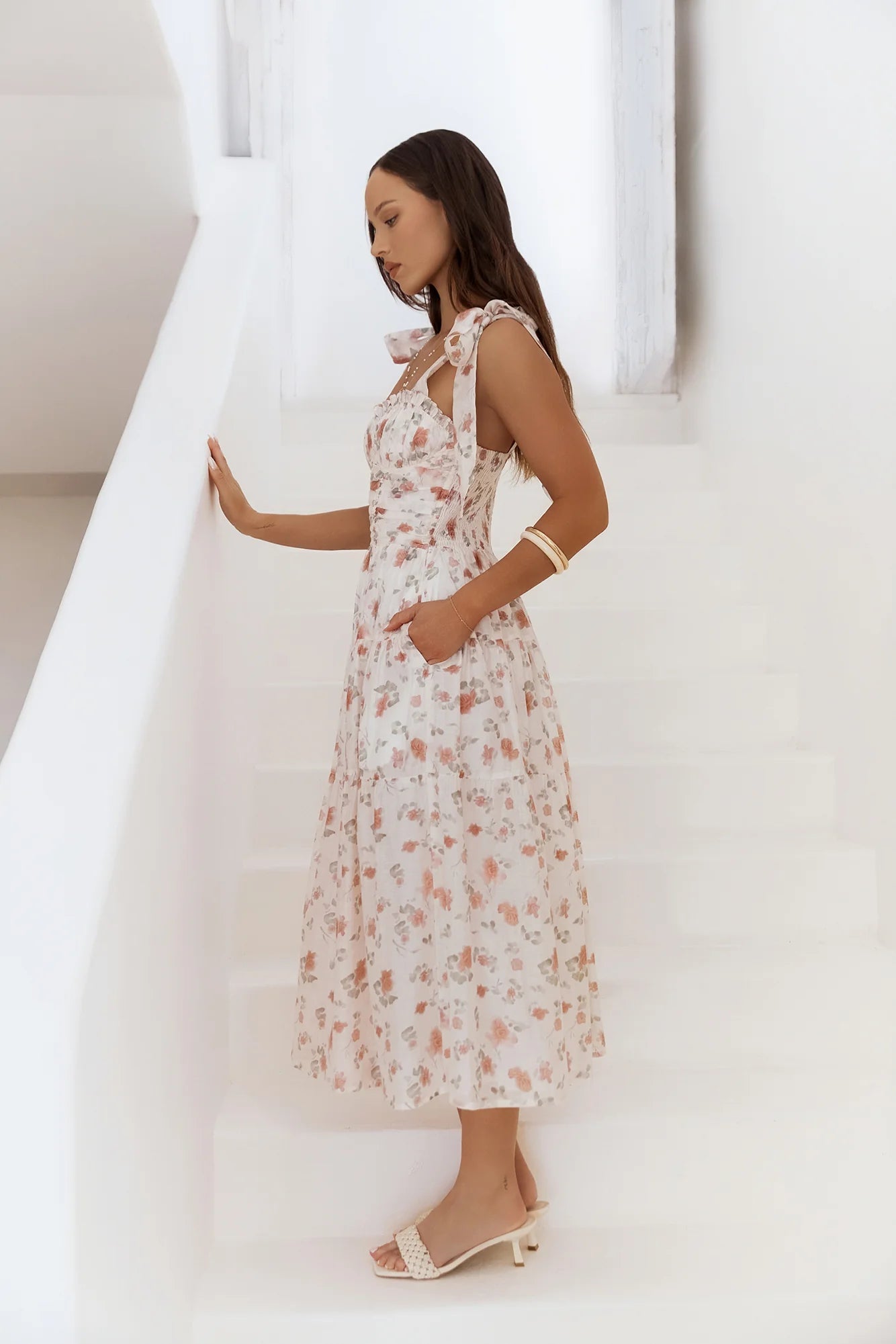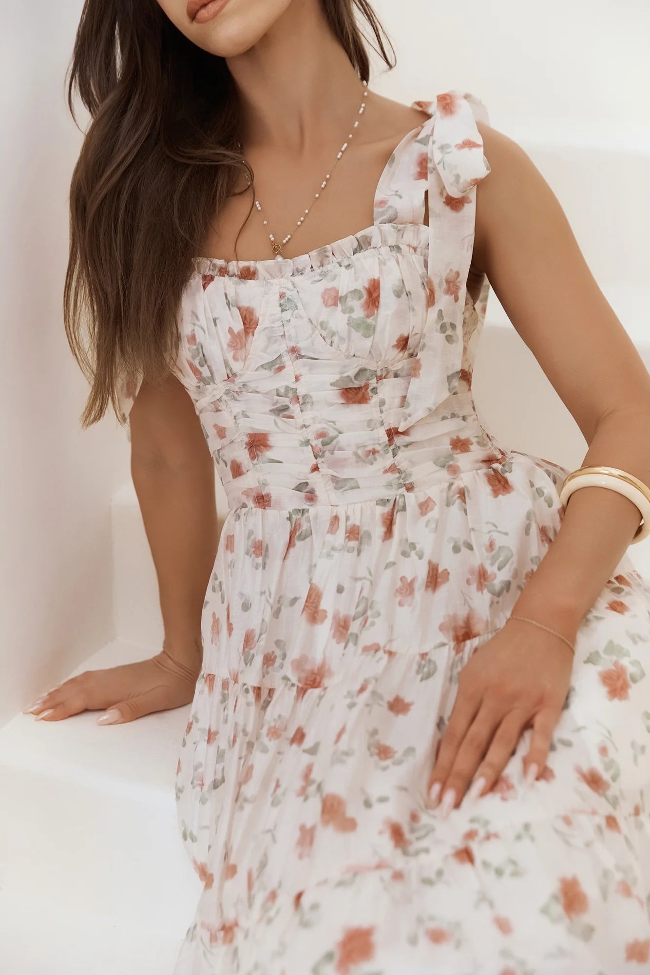 Summer has never been sweeter than in the Carmelita Maxi Dress, a sweet floral maxi perfect for your wardrobe. Style with mules and gold adornments.