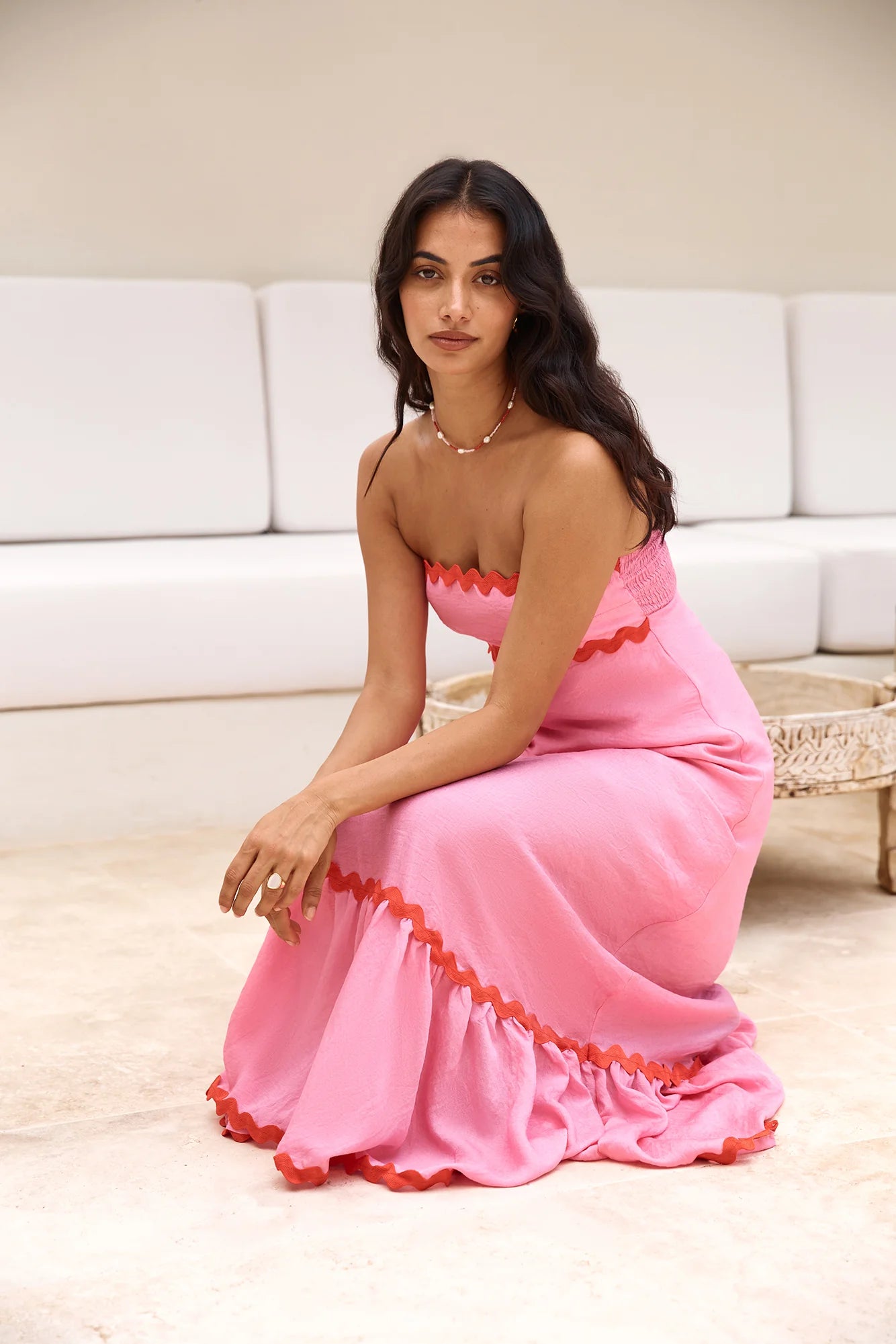 Elevate your style with the Cherry On Top Maxi Dress in Pink, a vibrant statement piece for any occasion. Perfect for sipping cocktails at rooftop bars in Bangkok or strolling through cherry blossom gardens in Kyoto, this dress adds a touch of elegance and flair to your travels.