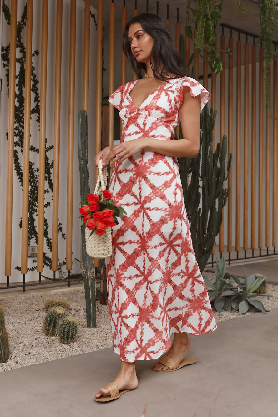 The Citrus and Spice Maxi Dress in Orange is a fun and bright dress to go with the summer weather. Pair with strappy sandals and gold adornments.