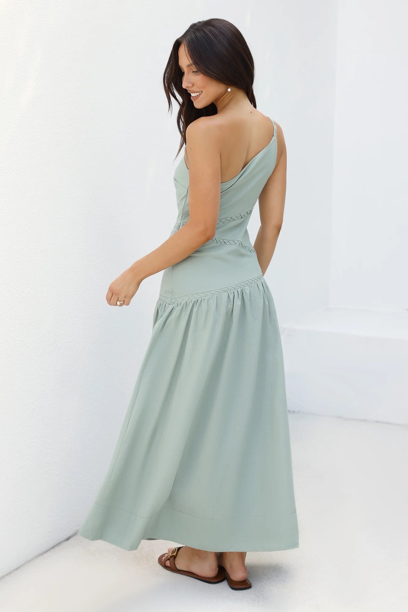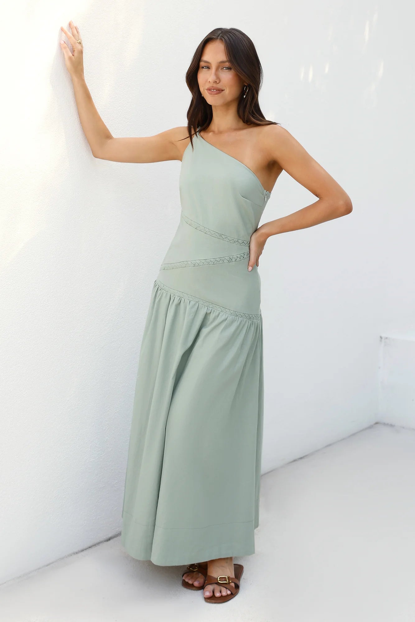 Grace meets understated elegance in the Claire One Shoulder Maxi Dress Khaki. Designed for effortless movement, this breezy dress features a chic asymmetrical neckline and intricate stitched detailing that wraps around the bodice for a flattering silhouette. The flowing skirt drapes beautifully, creating an ethereal, laid-back feel that’s perfect for sunlit escapes or leisurely weekends.