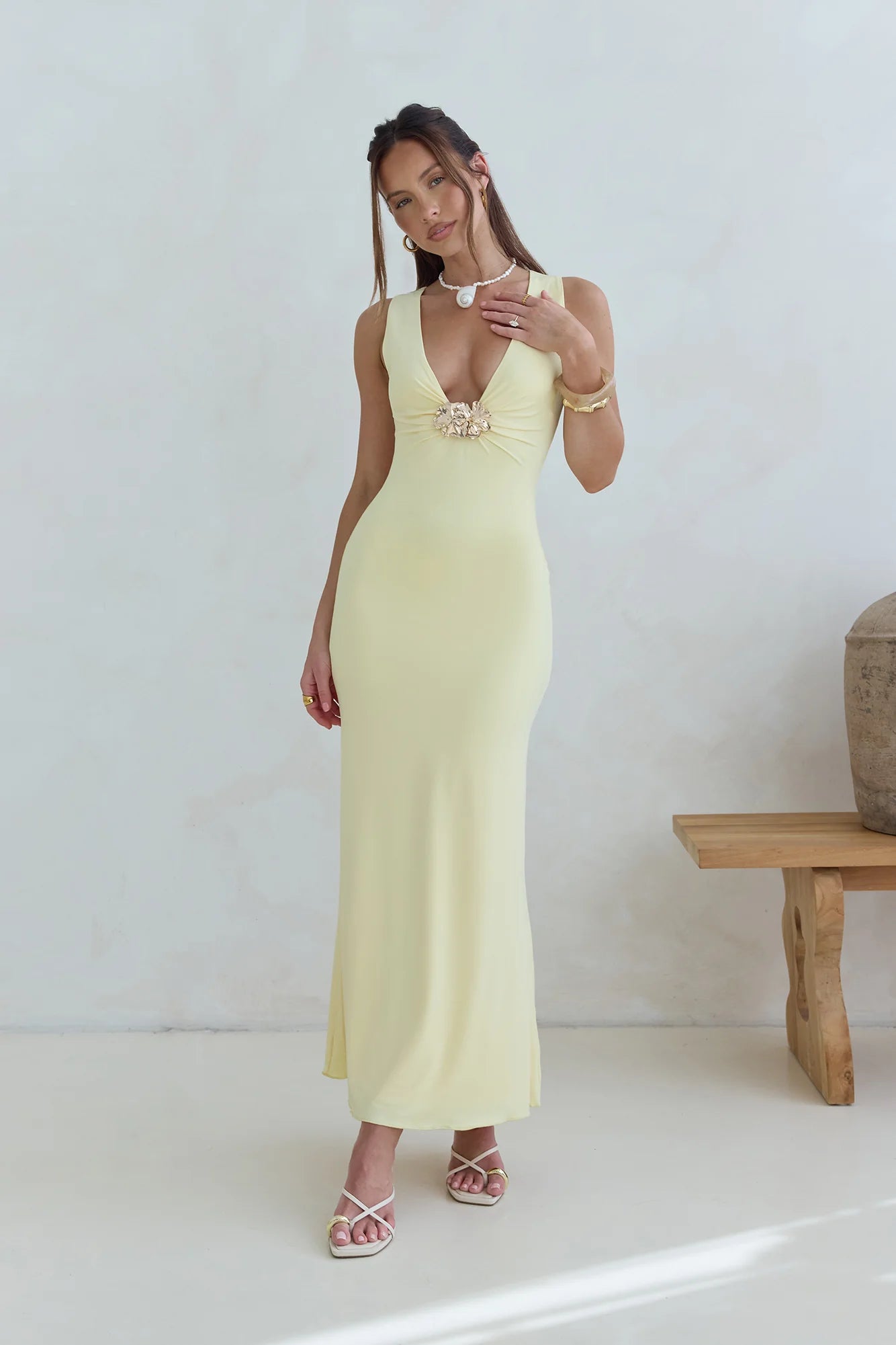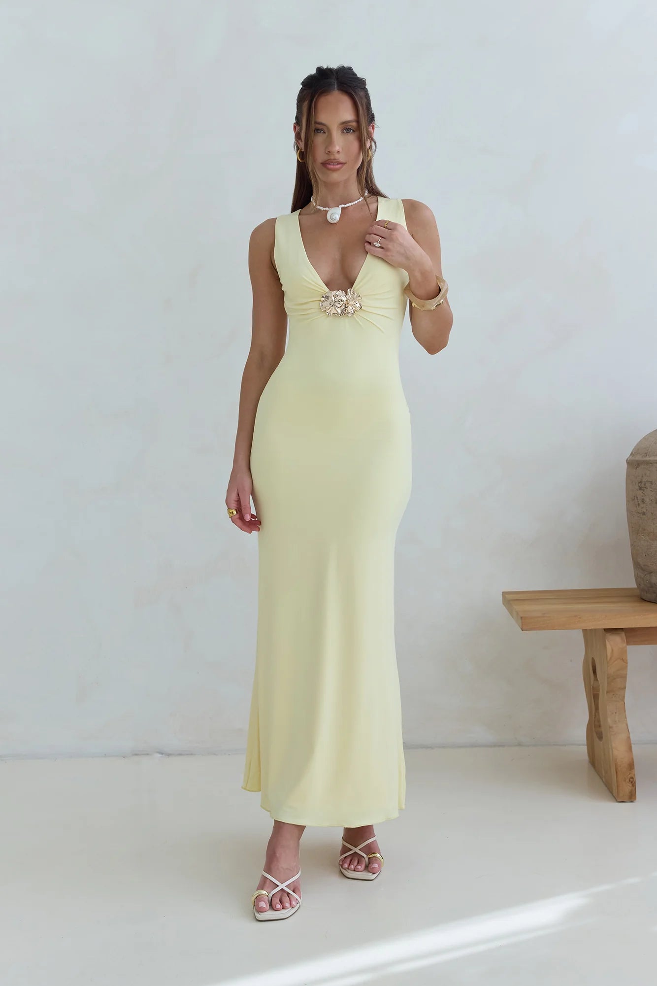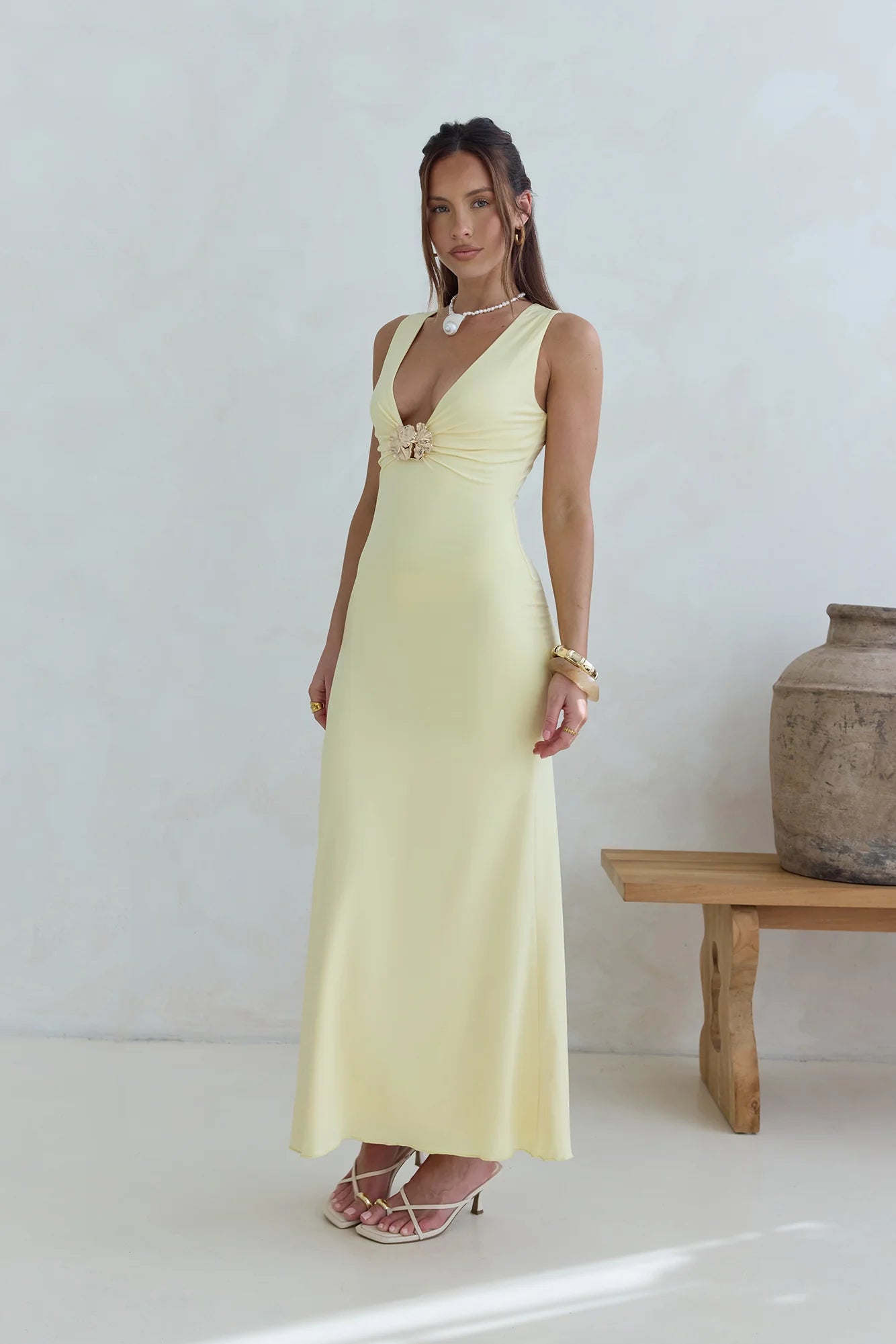 Step into timeless elegance with the Coastal Caprice Maxi Dress. Pair with gold accessories to highlight the dress's statement detail, and let this statement style bring effortless chic to any occasion.