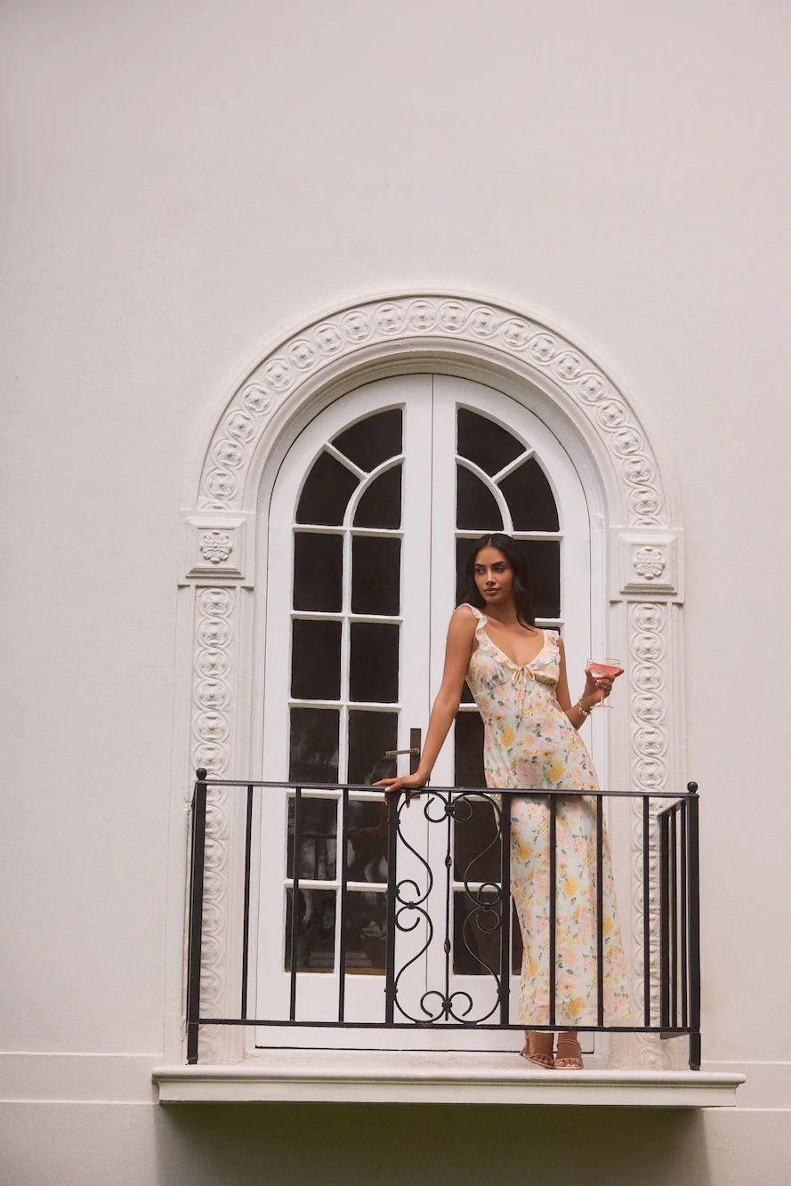 The Dear Delilah Maxi Dress is the perfect romantic piece for dates under the sun. With a delicate floral print and carefully placed frill details, this maxi dress was made for falling in love. Style with mules, gold jewellery, and curled hair for an effortless elegant, romantic look.