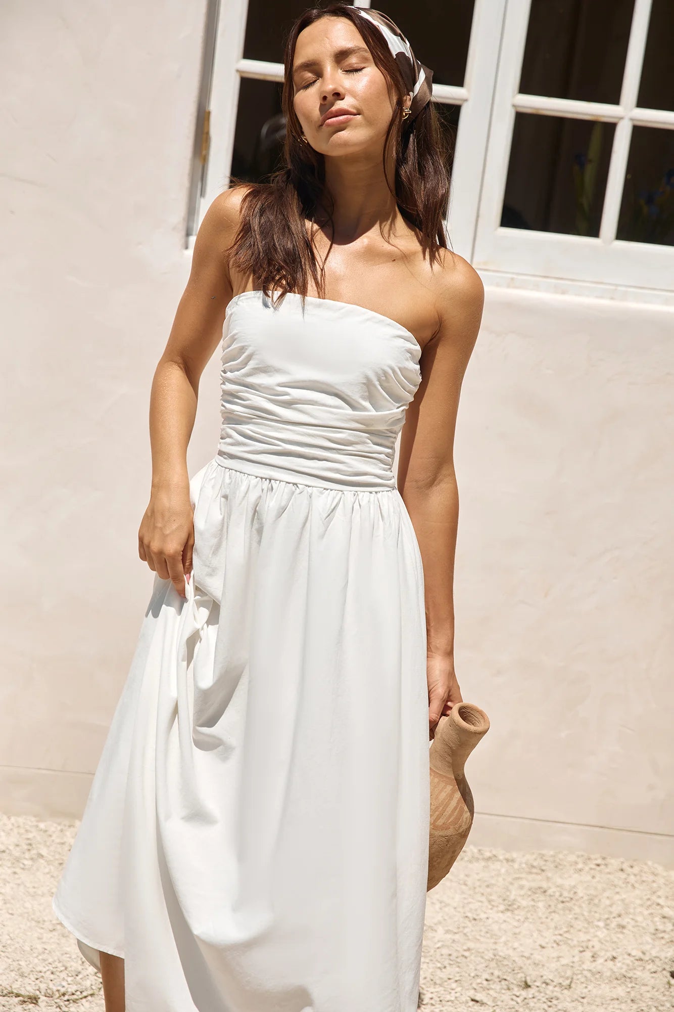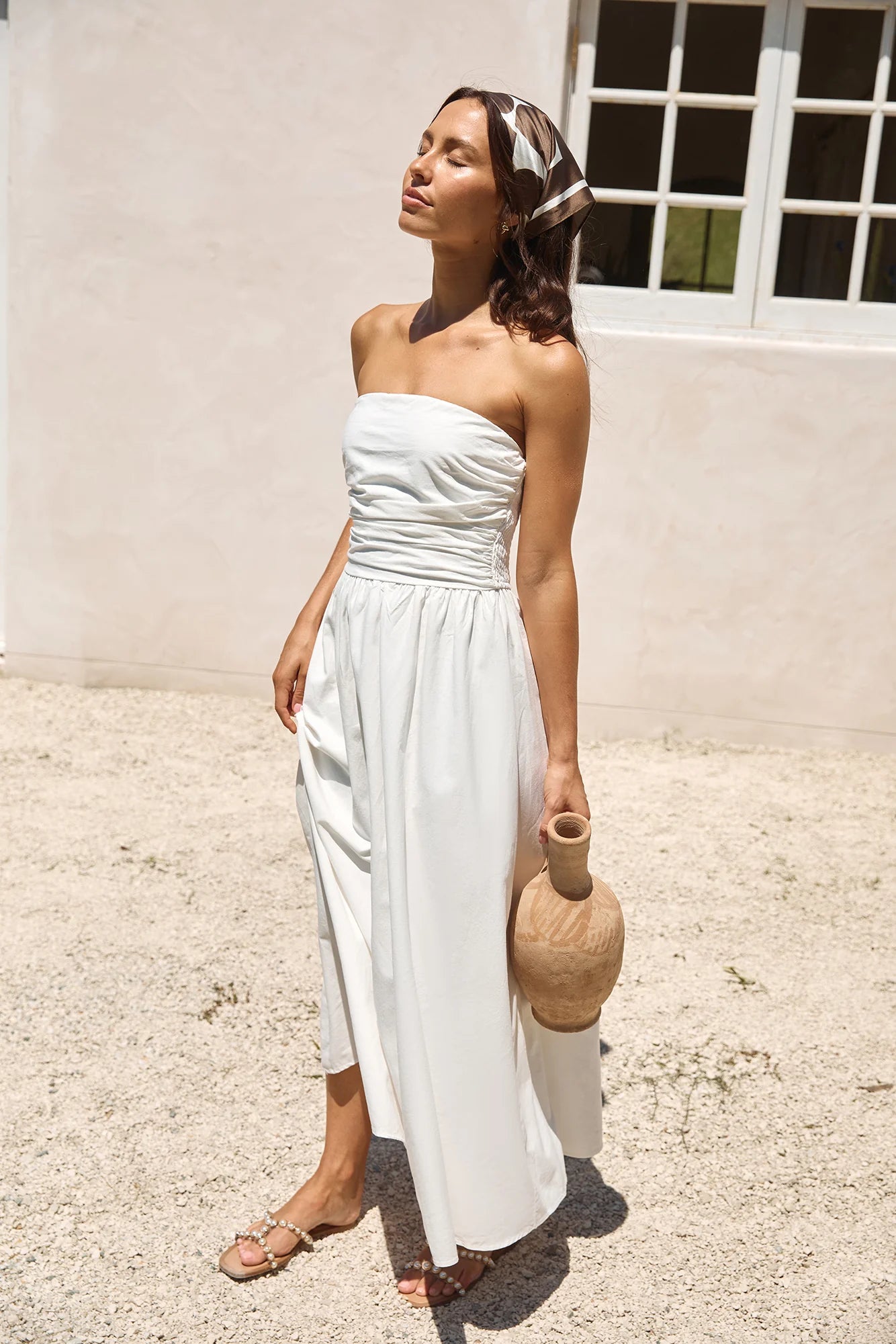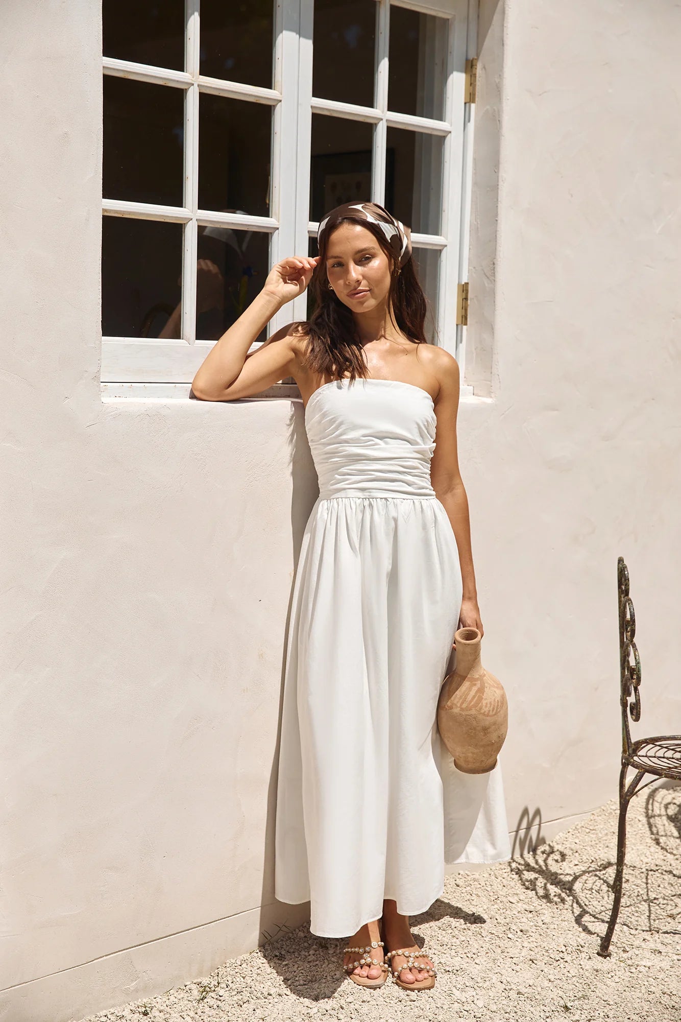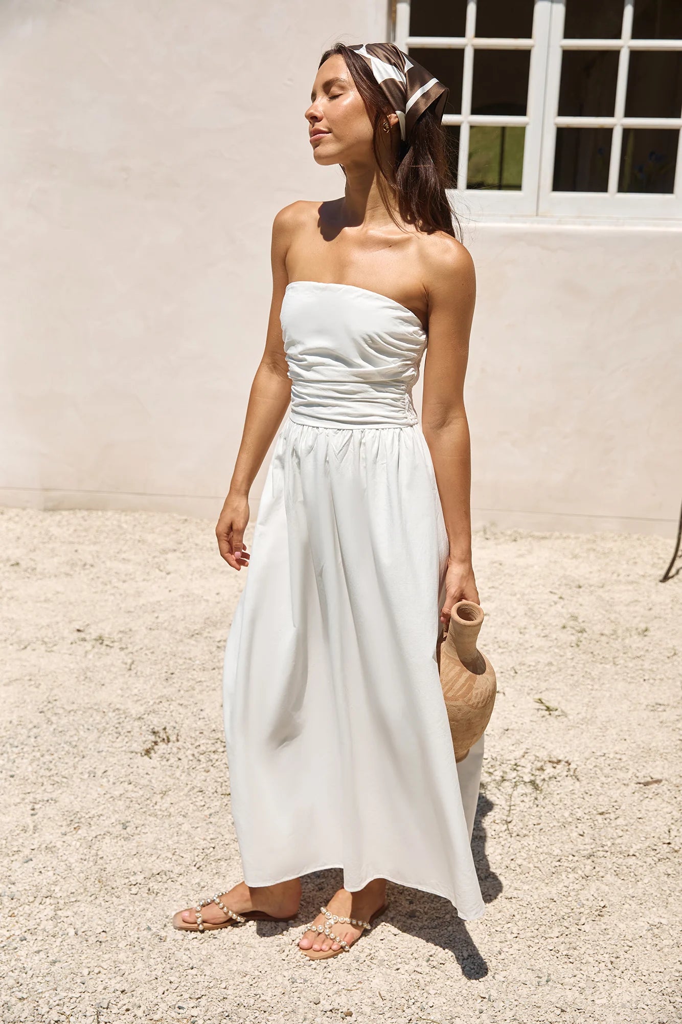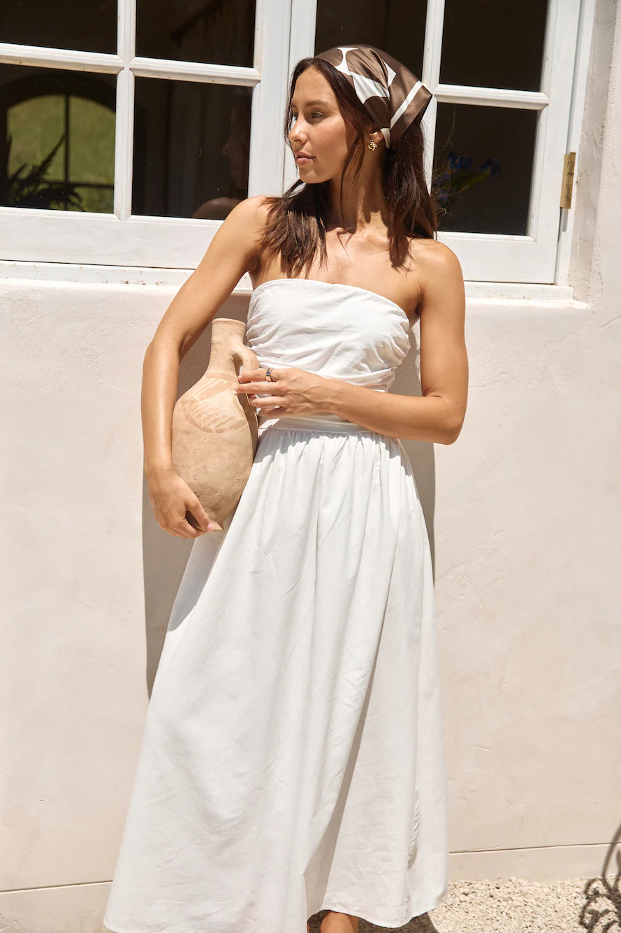Experience pure elegance and relaxation in our Deep Breaths Strapless Maxi Dress in White. This effortlessly chic dress, with its flowing silhouette and strapless design, is perfect for destination weddings on the beaches of Bali or serene sunset dinners in the Maldives.