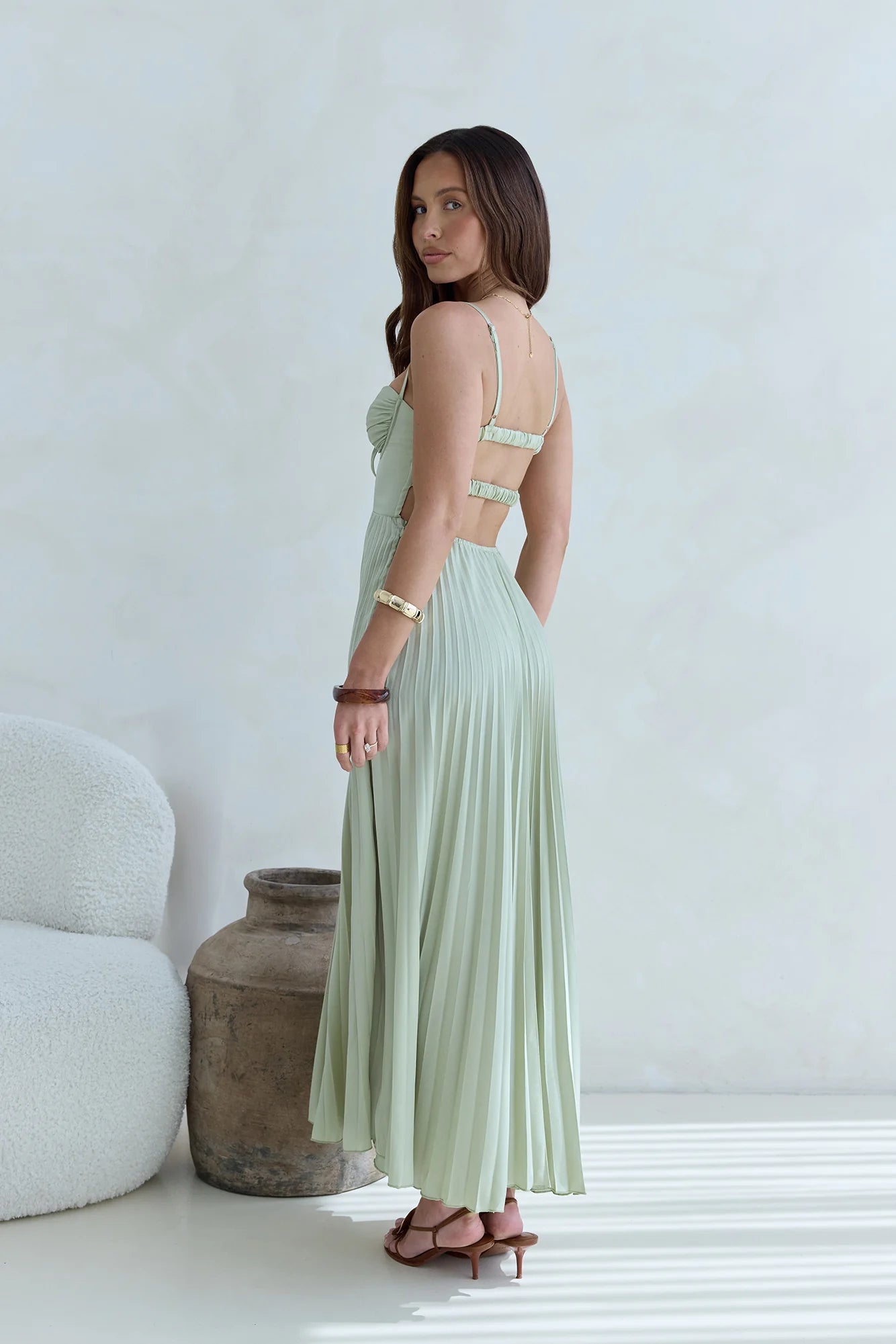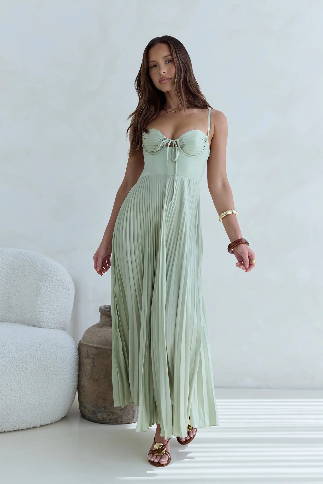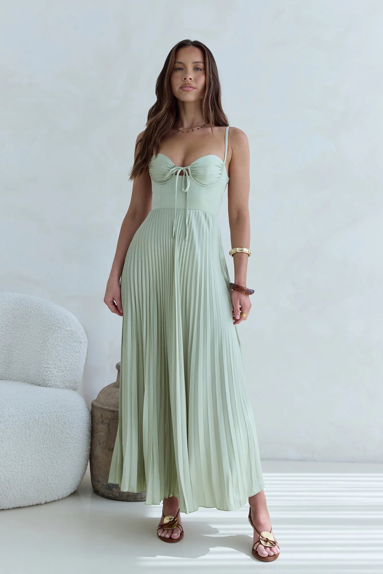 Classy and chic, be seen in the Del Mar Maxi Dress. Featuring a gorgeous pleated silhouette, an elastic back and a front tie. Style with mules and flowing hair for an effortlessly elegant look.