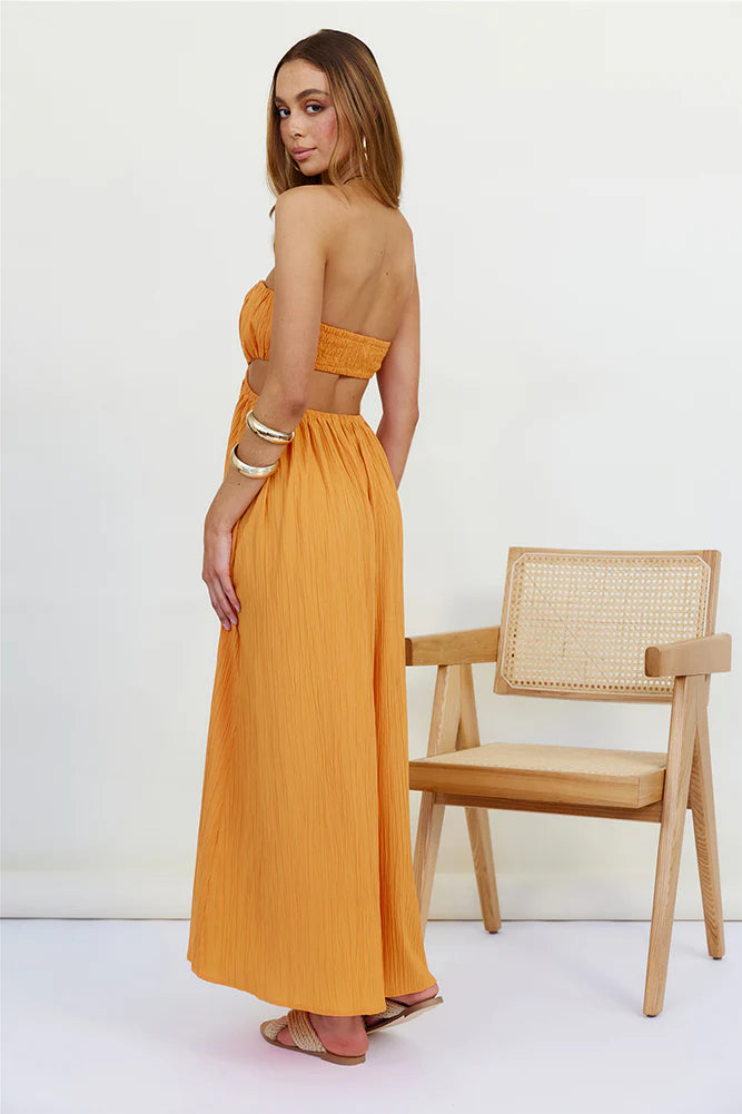 Free yourself from the worries of life and enjoy the beauty of nature in our Delphina Maxi Dress. Style yours with lace-up sandals and a mini shoulder bag for your next trip to the markets.