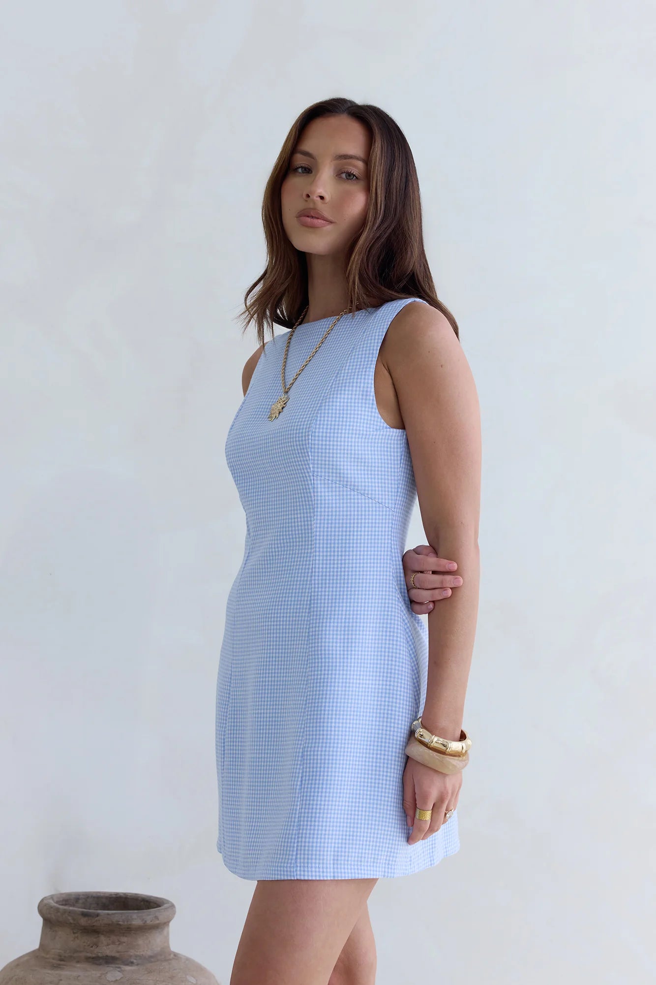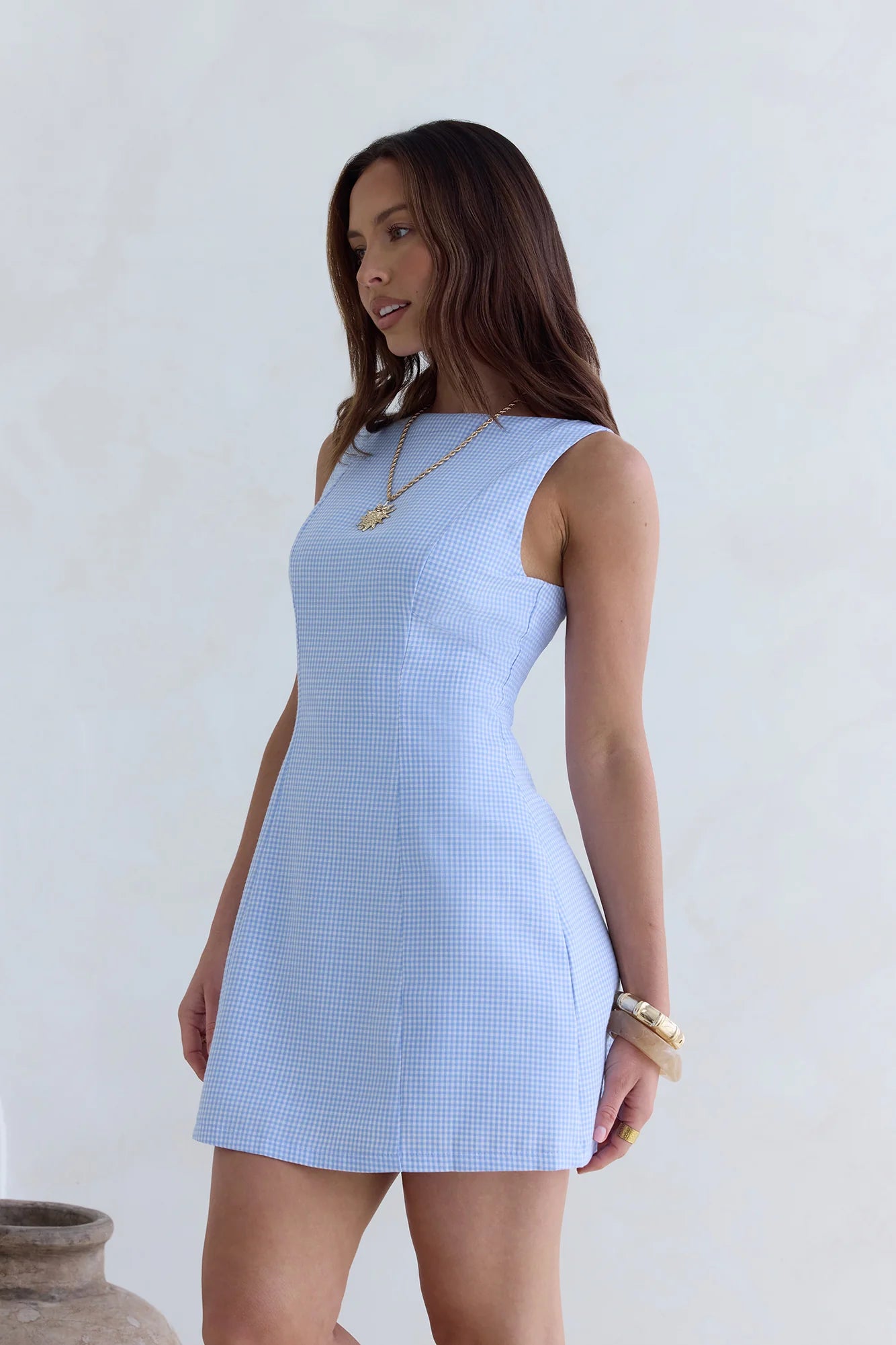 Enjoy slow days under the sun in the Dreamy Skies Gingham Mini Dress, a delicate piece perfect for enjoying the small moments in life. Style with strappy sandals and gold jewellery.
