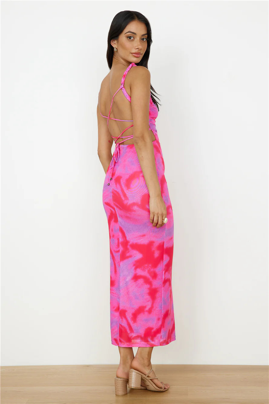 Embody the magnificent colors of the sky in the Enchanted Skies Maxi Dress in Pink. Paired with black heels and silver adornments, you will bring the beauty of the sky down to the earth.
