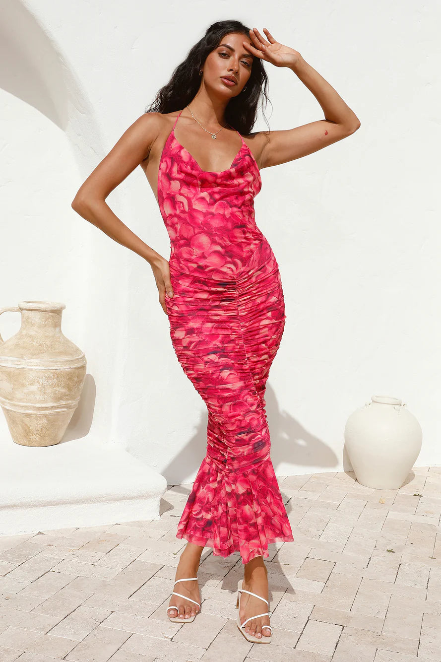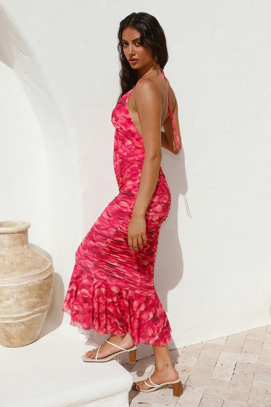 Turn heads in this stunning dress. The Feeling Joy Midi Dress in Red is the perfect dress to make a statement in. Pair with loose waves and tall heels to enhance the look.