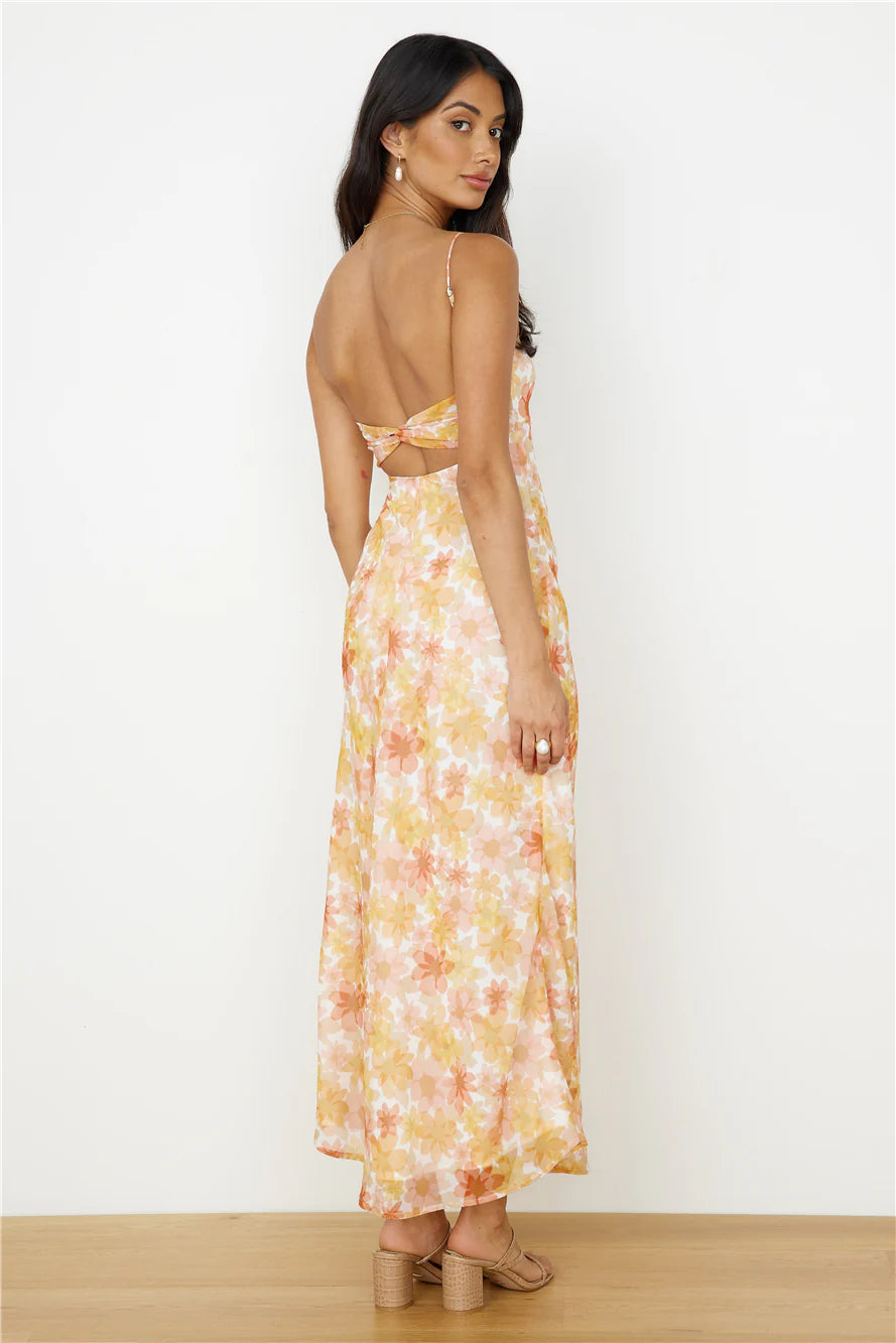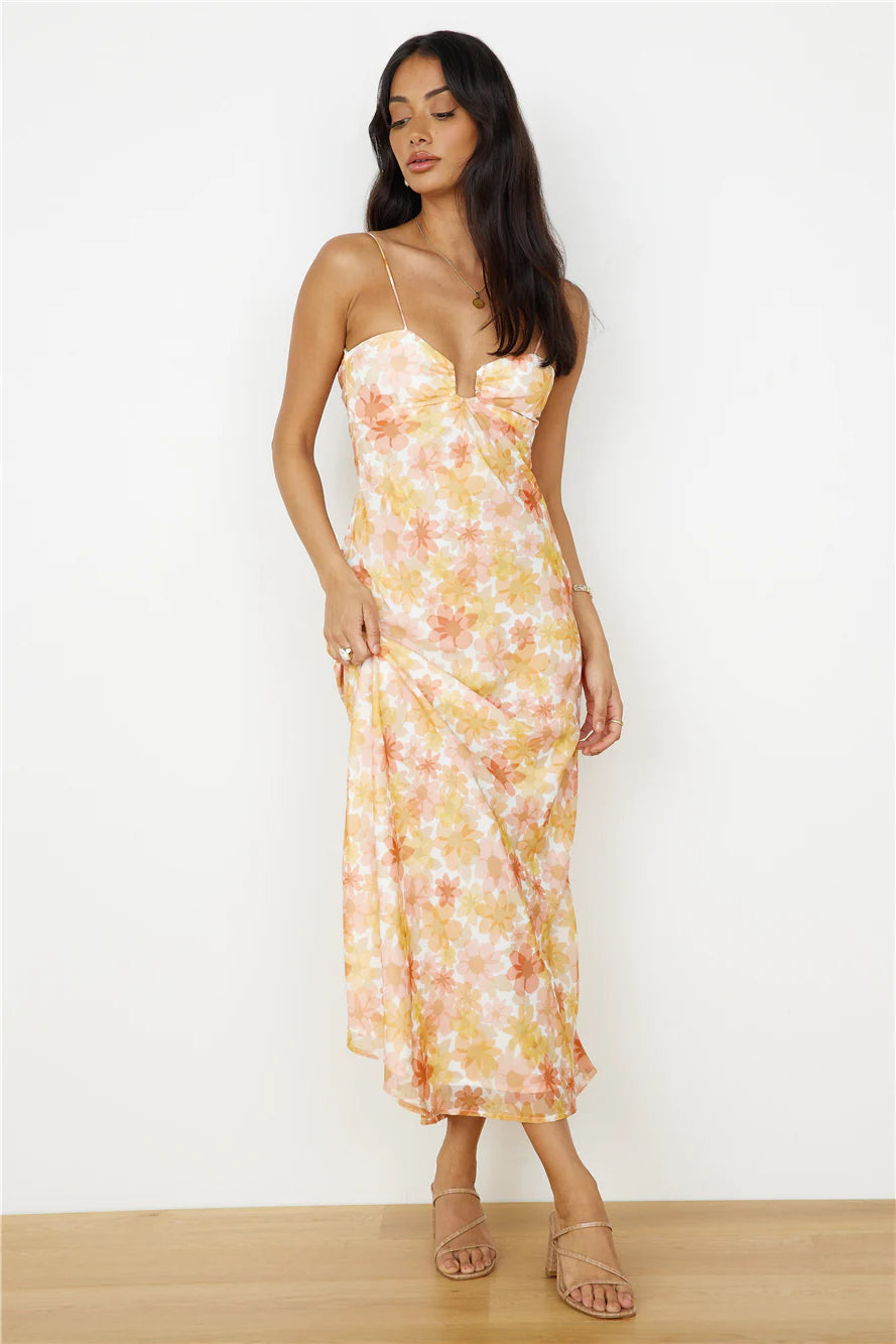 For moments that feel too good to be true, and places that have come straight out of a novel, the Follow You Anywhere Maxi Dress in Orange are all these combined. Paired with white heels and gold adornments, you are the author of your most magical story.