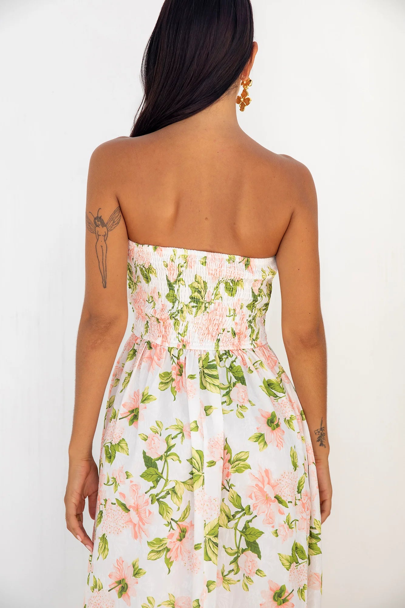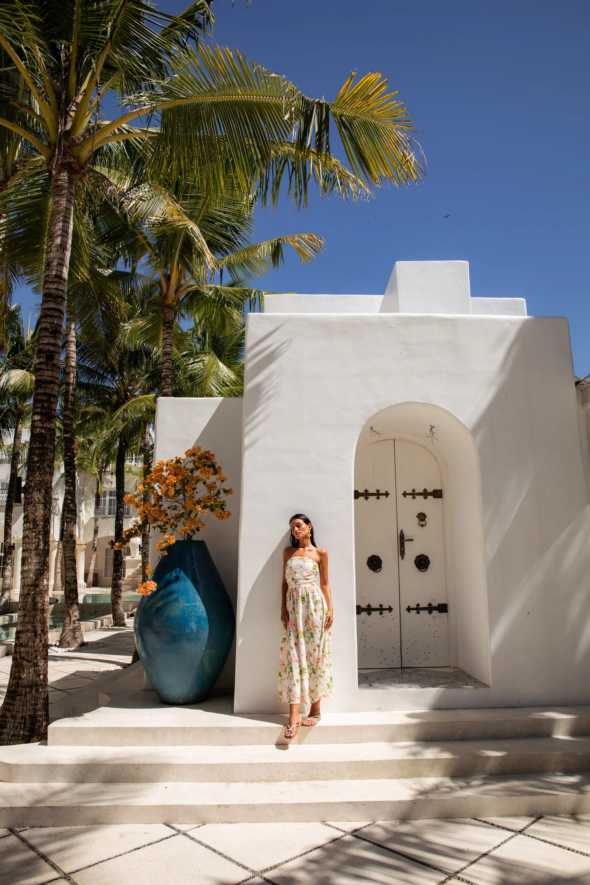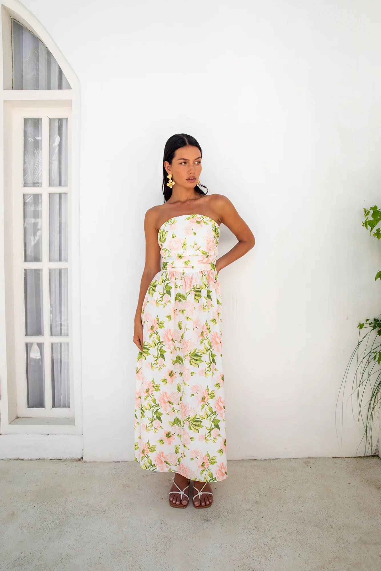 Make a statement with our Exclusively Designed, FORTUNATE ONE Bellissima Strapless Maxi Dress in Pink. This elegant, strapless dress features a flowing silhouette and vibrant hues, perfect for adding a touch of glamour to your summer soirées.