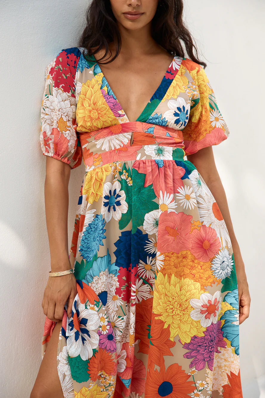 Elevate your style for garden festivities with the Garden Wedding Maxi Dress in Multi. Perfect for strolling through blooming gardens or dancing under twinkling lights, this dress captures the essence of romantic elegance.