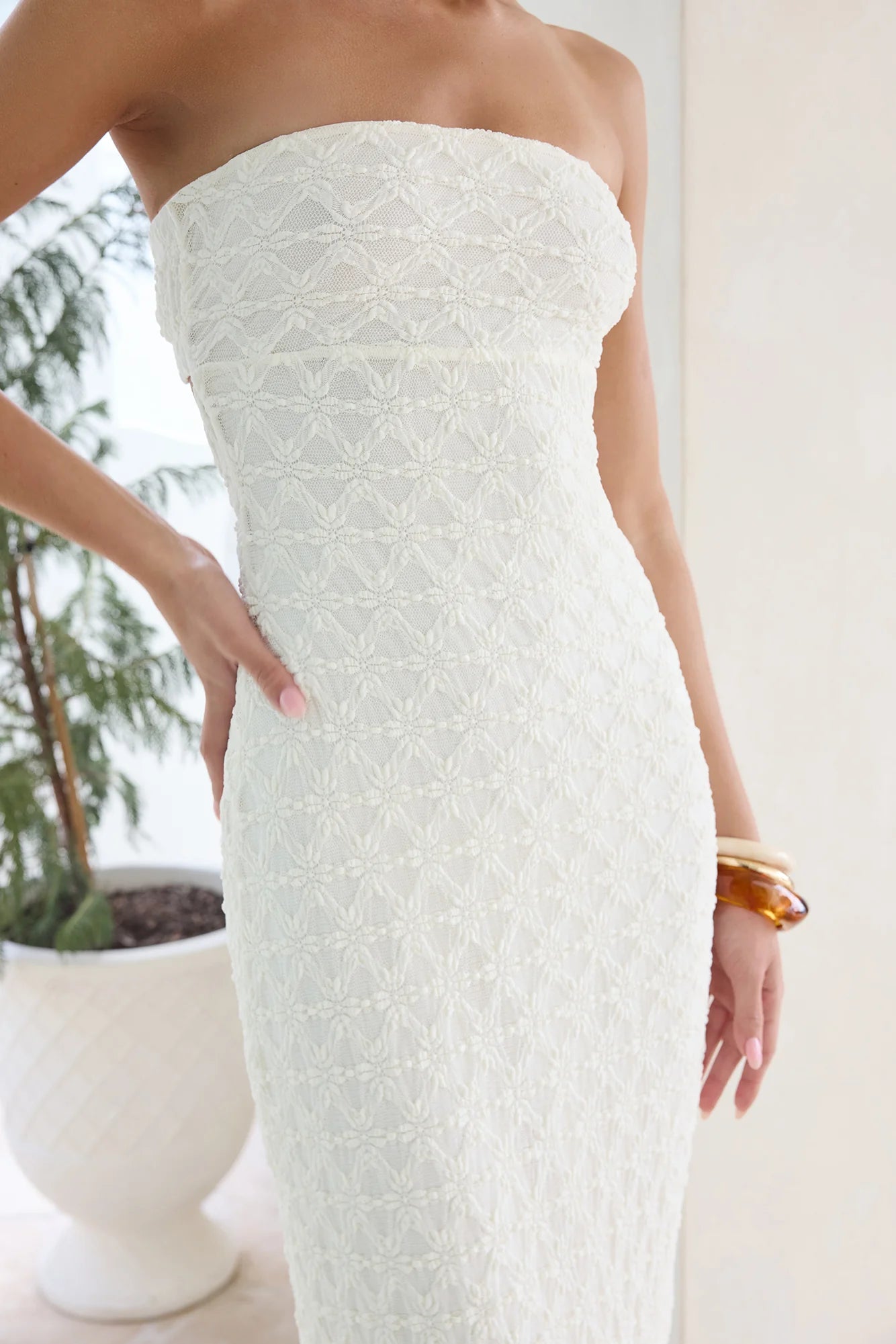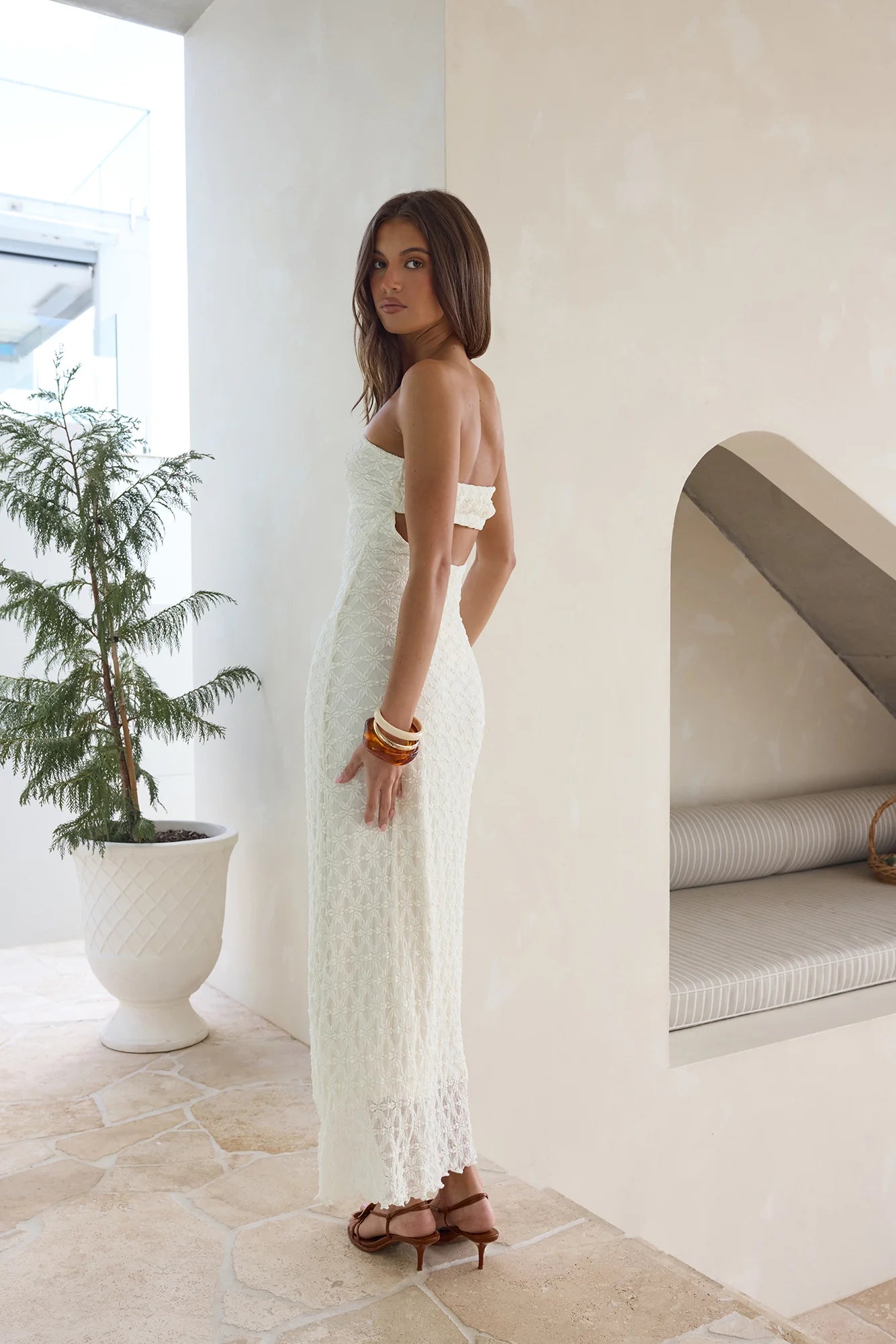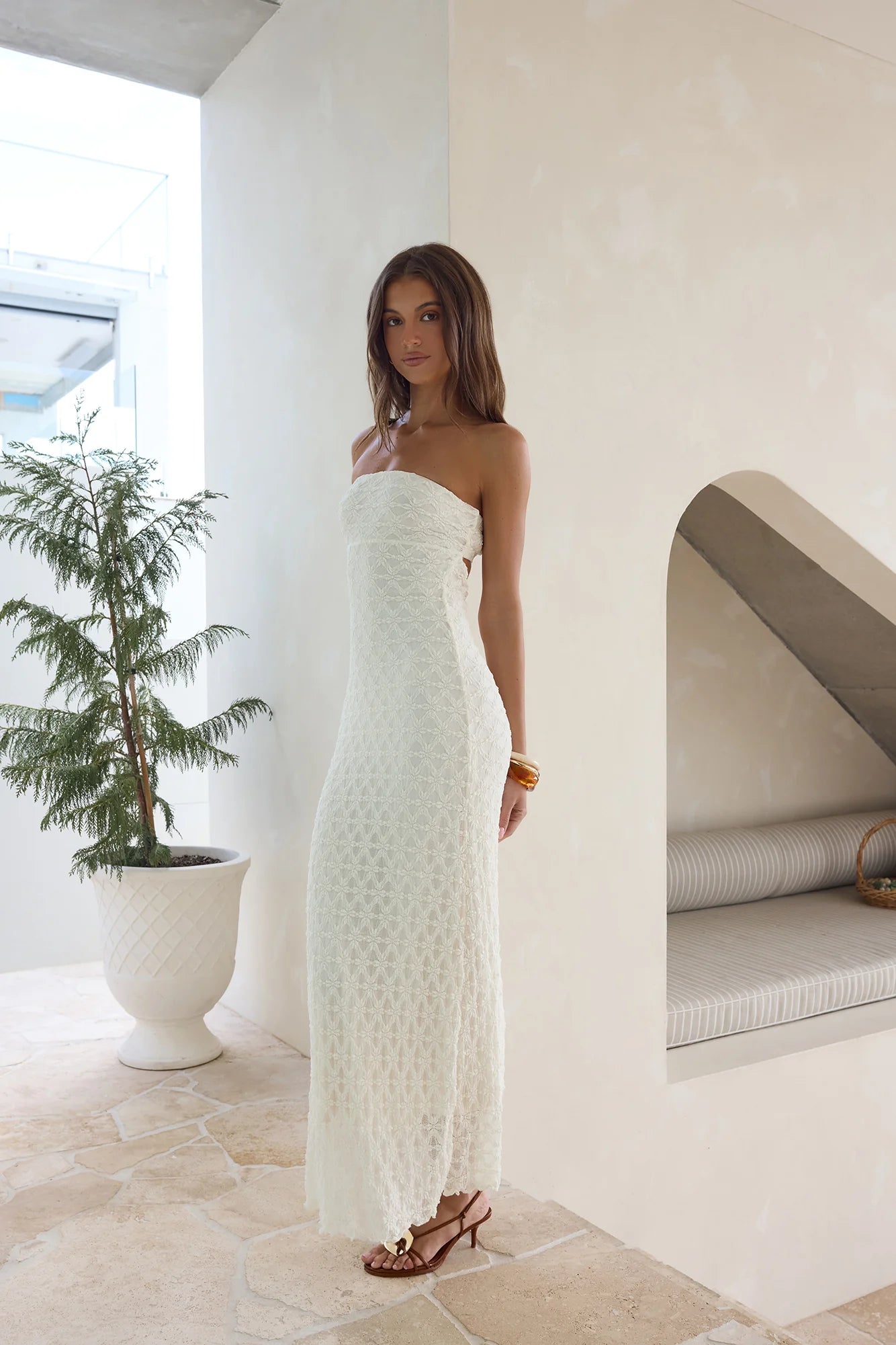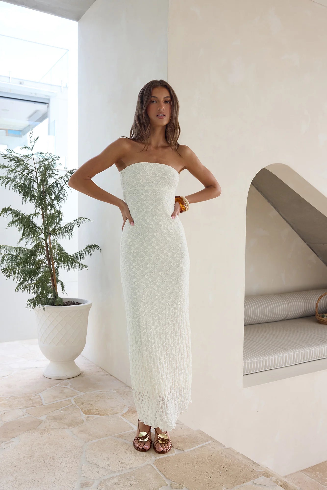 A classic maxi with statement twist, the Goddess Blessings Strapless Maxi Dress is the perfect addition to your vacay wardrobe. Style with strappy mules and a mini bag.
