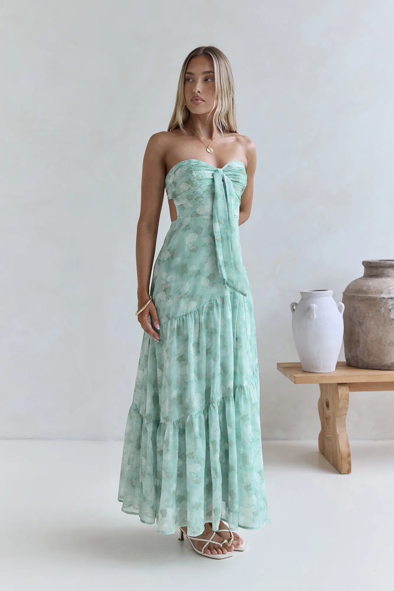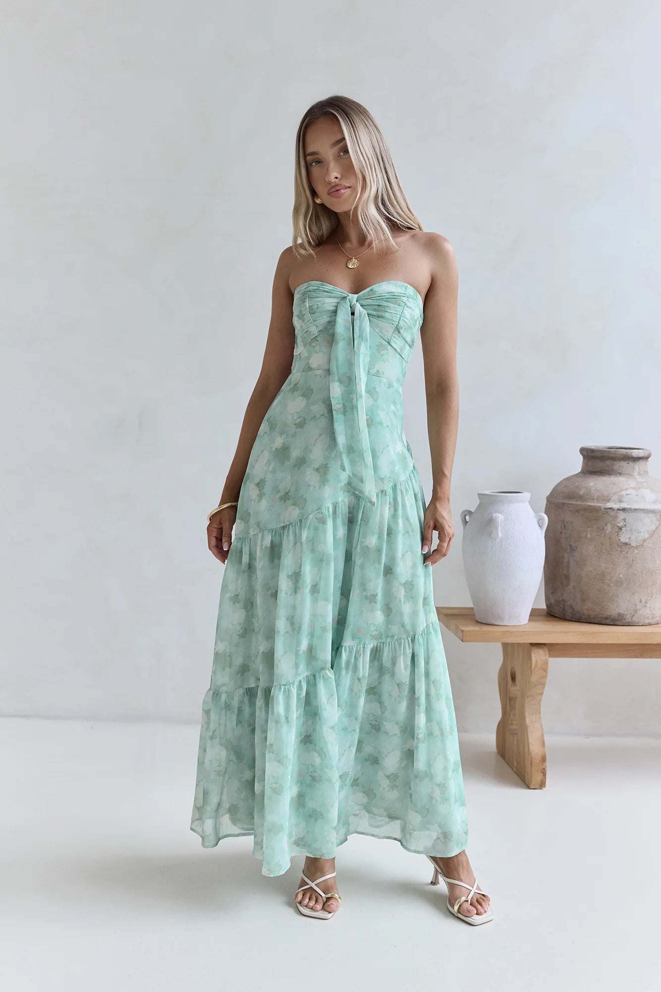 A romantic silhouette made for enjoying days under the sun, the Hear Your Heartbeat Strapless Maxi Dress is the perfect piece to complete your summer season. Style with loose waves and strappy sandals.