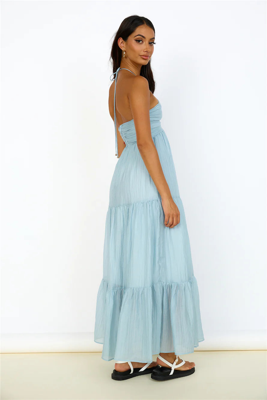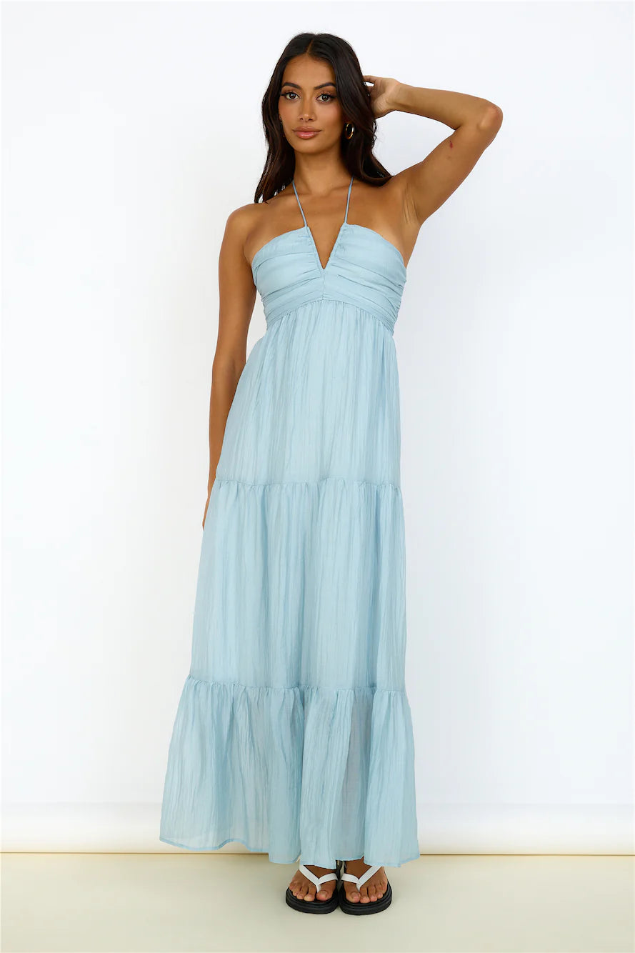 From those fairy-tale days in Santorini to those stunning sunsets over the water. We'll be reaching for the Heavenly Delight Maxi Dress to make our summer dreams come true. Style yours with neutral block heels and lightly tousled waves for a chic and effortless look.