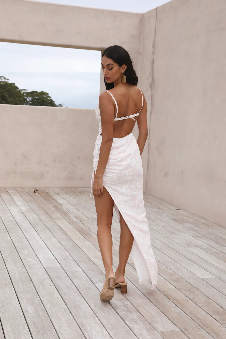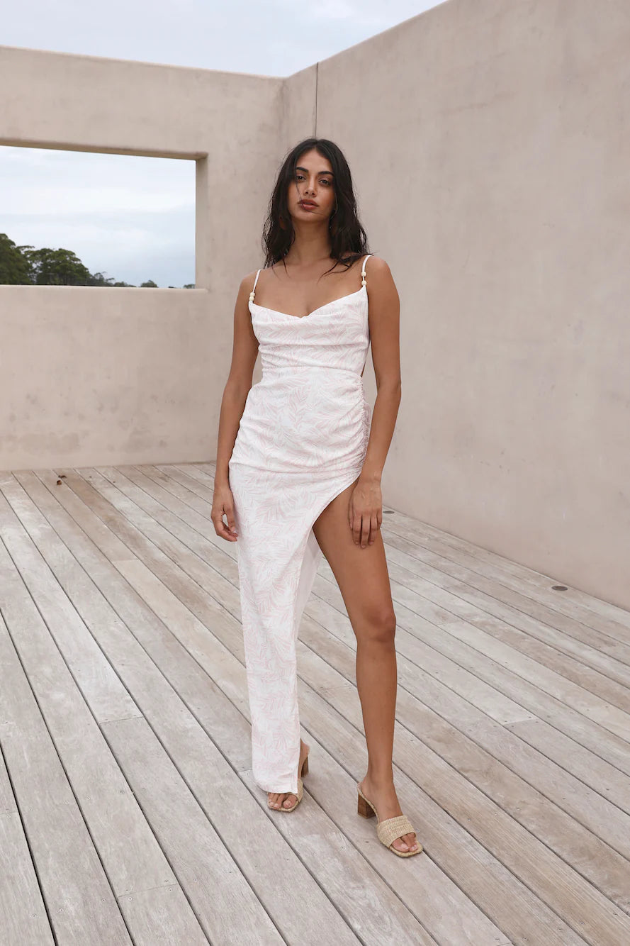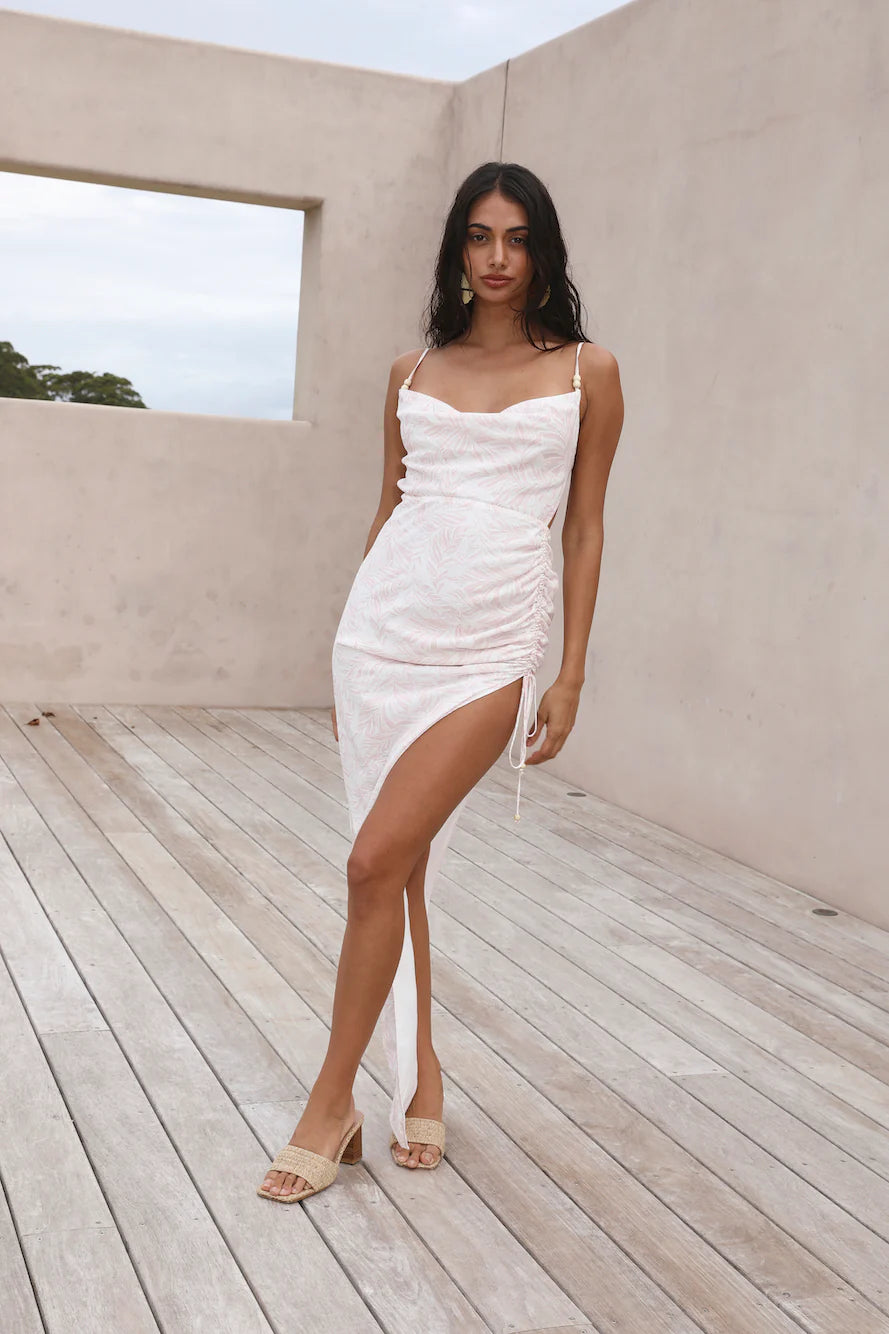 The HELLO MOLLY White Sand Oasis Maxi Dress is the perfect choice for an effortless, yet elegant look. With its eye-catching design and comfortable fit, this maxi dress is perfect for any summer occasion. Style with gold adornments and a summer tan!