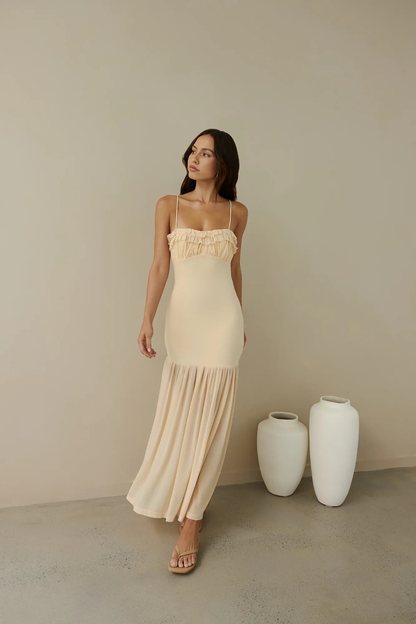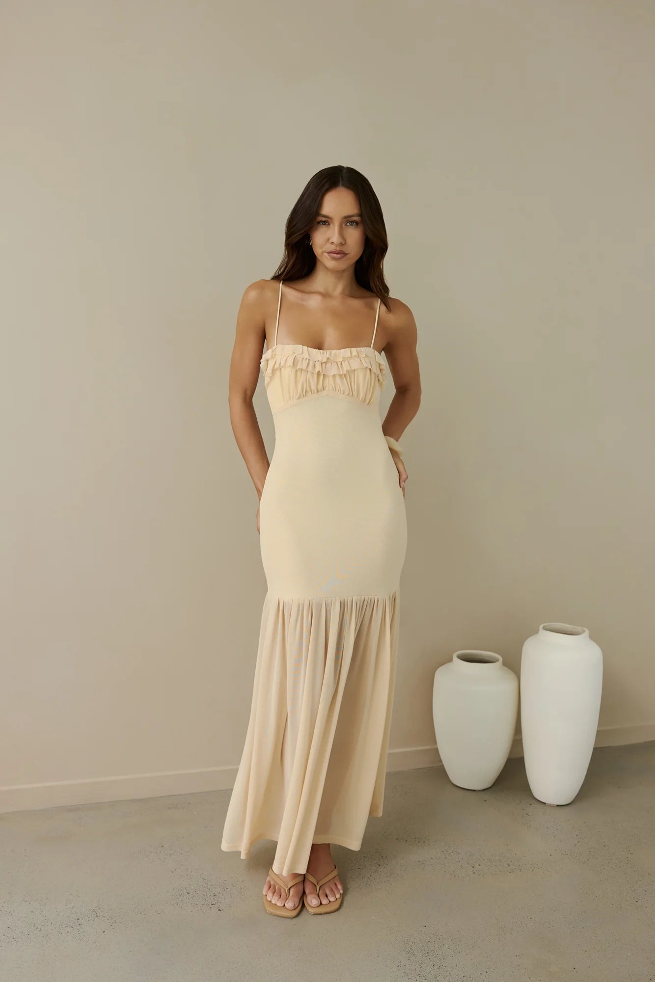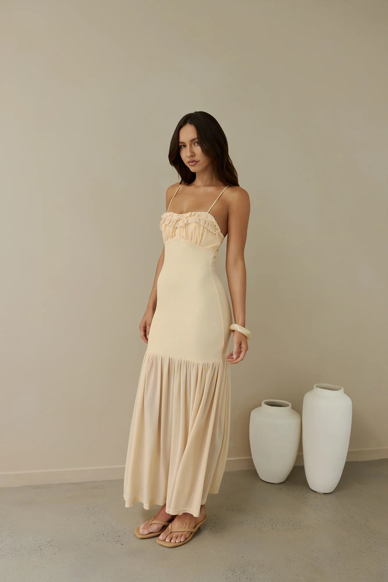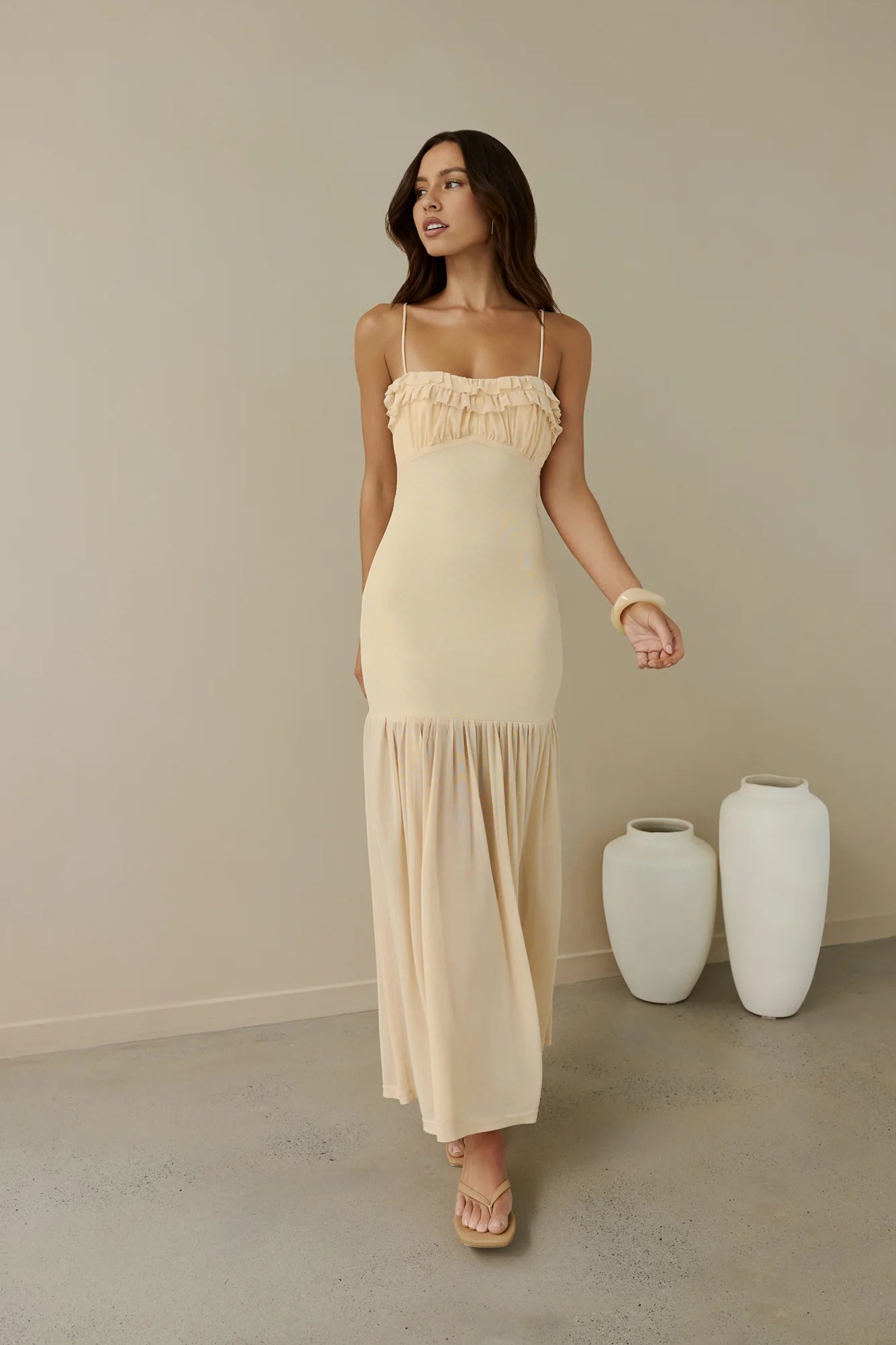 Step into a summer dream with the Just Right Mesh Maxi Dress. Featuring a frill neckline, a flowy skirt and sheer panelling, this dress is the perfect balance of elegant and relaxed. Style with mules and lightly curled hair.