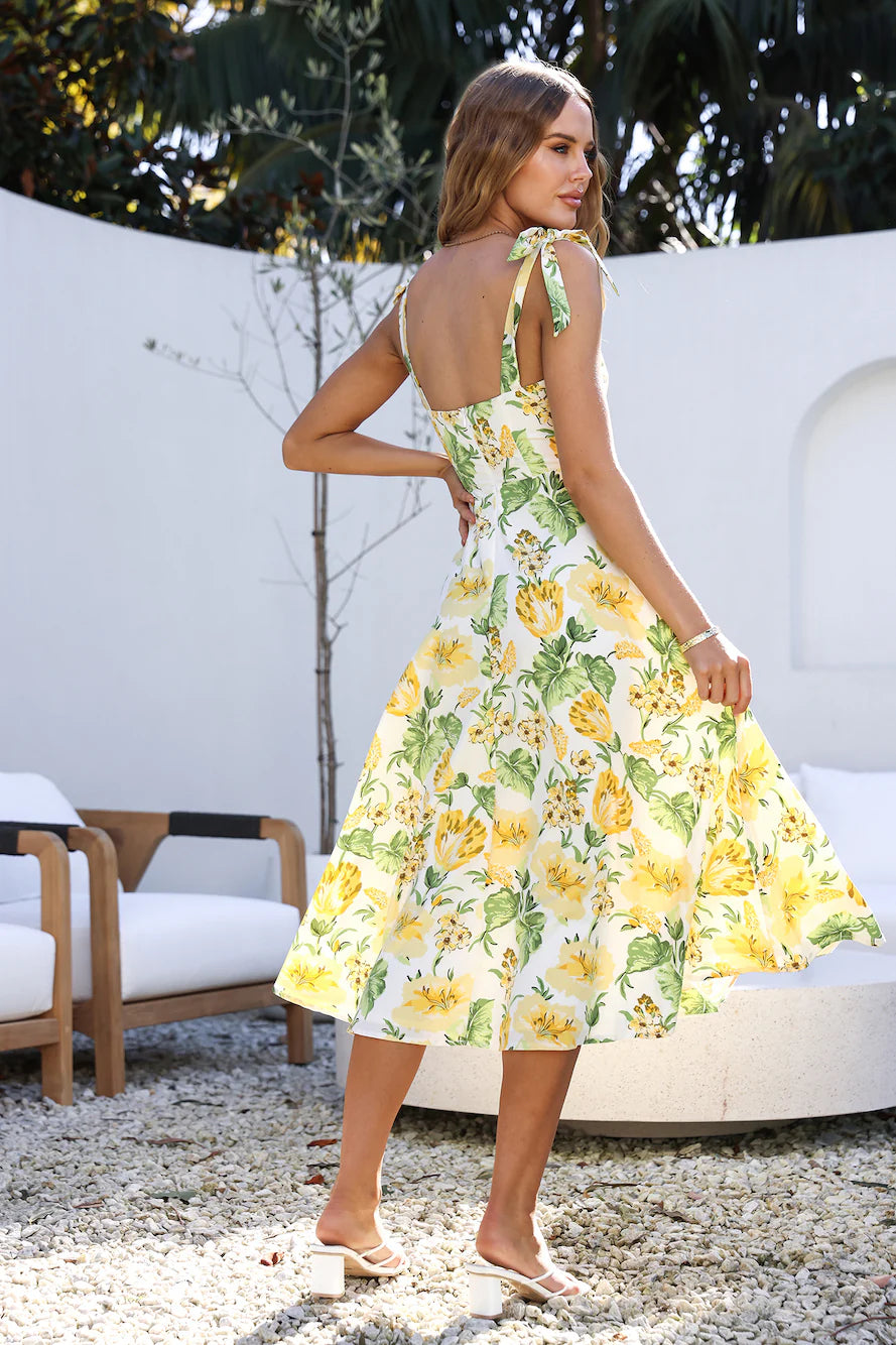 Be the epitome of wanderlust perfection in the Keep Driving Midi Dress! Style yours with heels and curls.