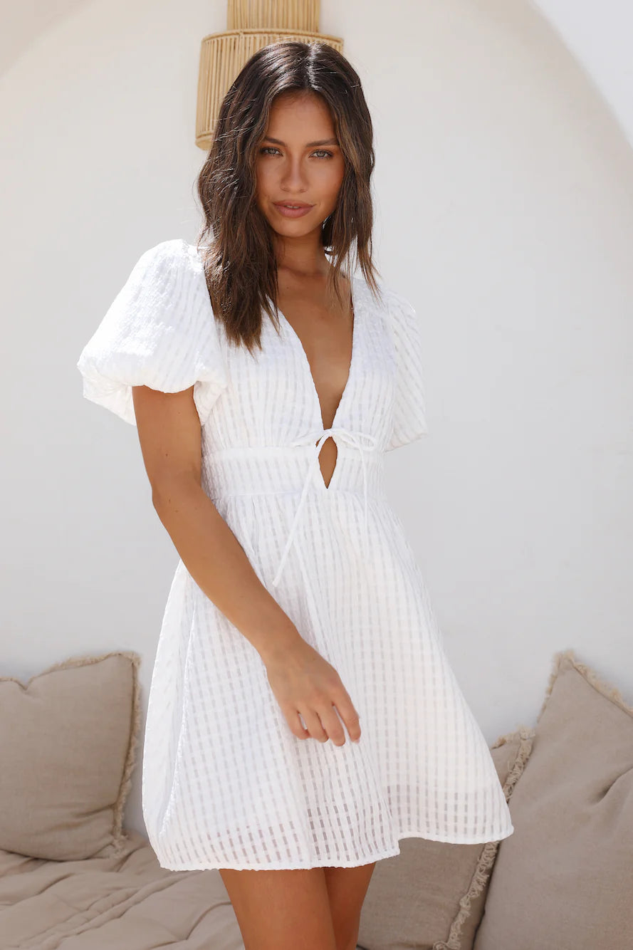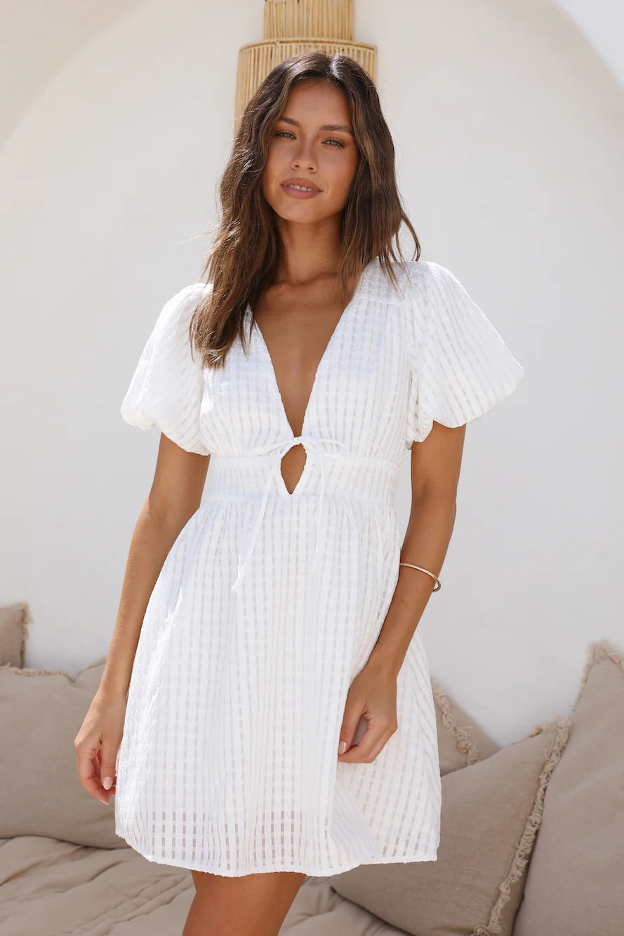 Our Kite Flying Mini Dress is the perfect addition to your wardrobe. Style yours with gold adornments and sneakers for a cute casual date night look!