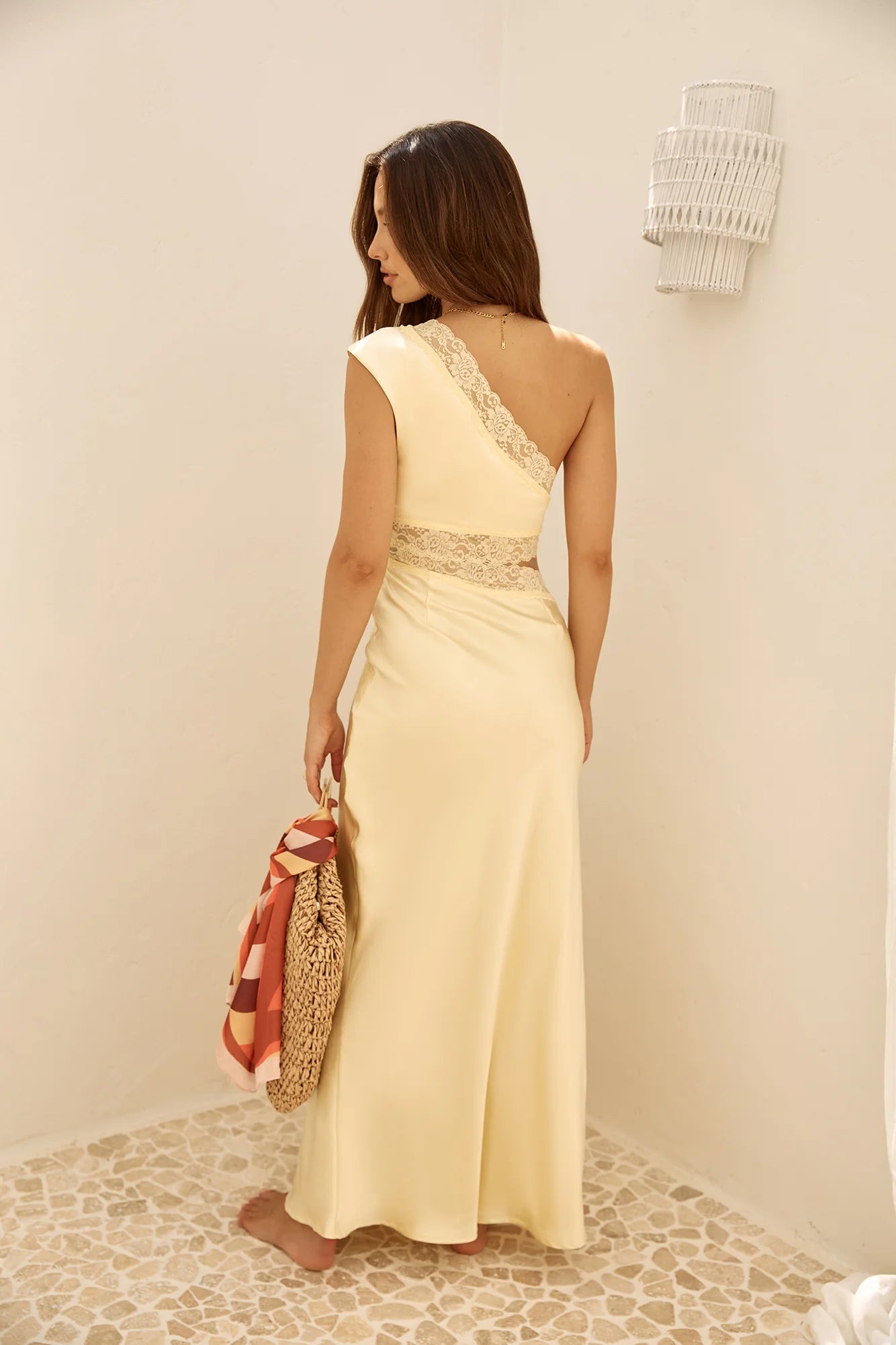 The Limitless Love Satin Maxi Dress in Yellow is a luscious and luxurious piece that dances with the breeze like a tropical daydream. With the most ethereal details, this dress is the perfect companion for a moonlit beachside soirée. Style with strappy black heels and hair slicked back to cast elegance at any event.