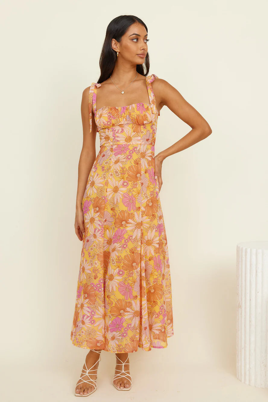 Inspired by the sunsets of Mykonos, our Lost In Paradise Maxi Dress is the essential maxi for your next getaway. Style yours with lace-up sandals and gold adornments.