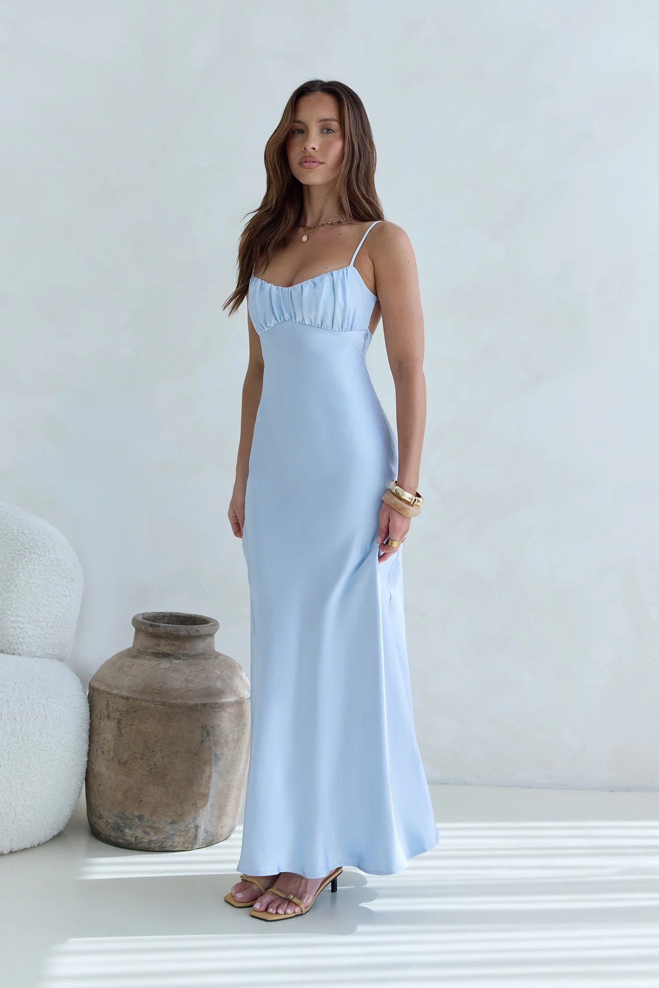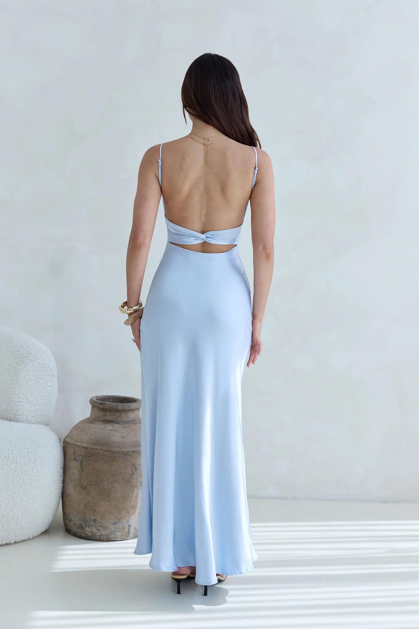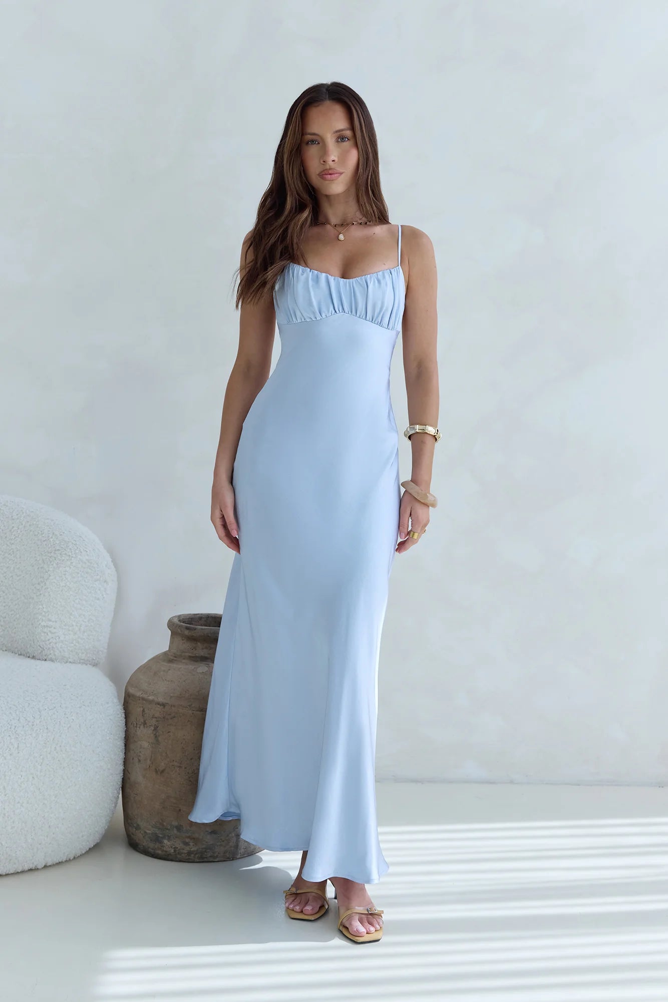 A classic silhouette made for celebration, the Love And Desire Satin Maxi Dress is a flattering design inspired by romance. Featuring a dreamy satin finish, gathered top and bold open back with a twisted detail. Pair with classy mules and a clutch.