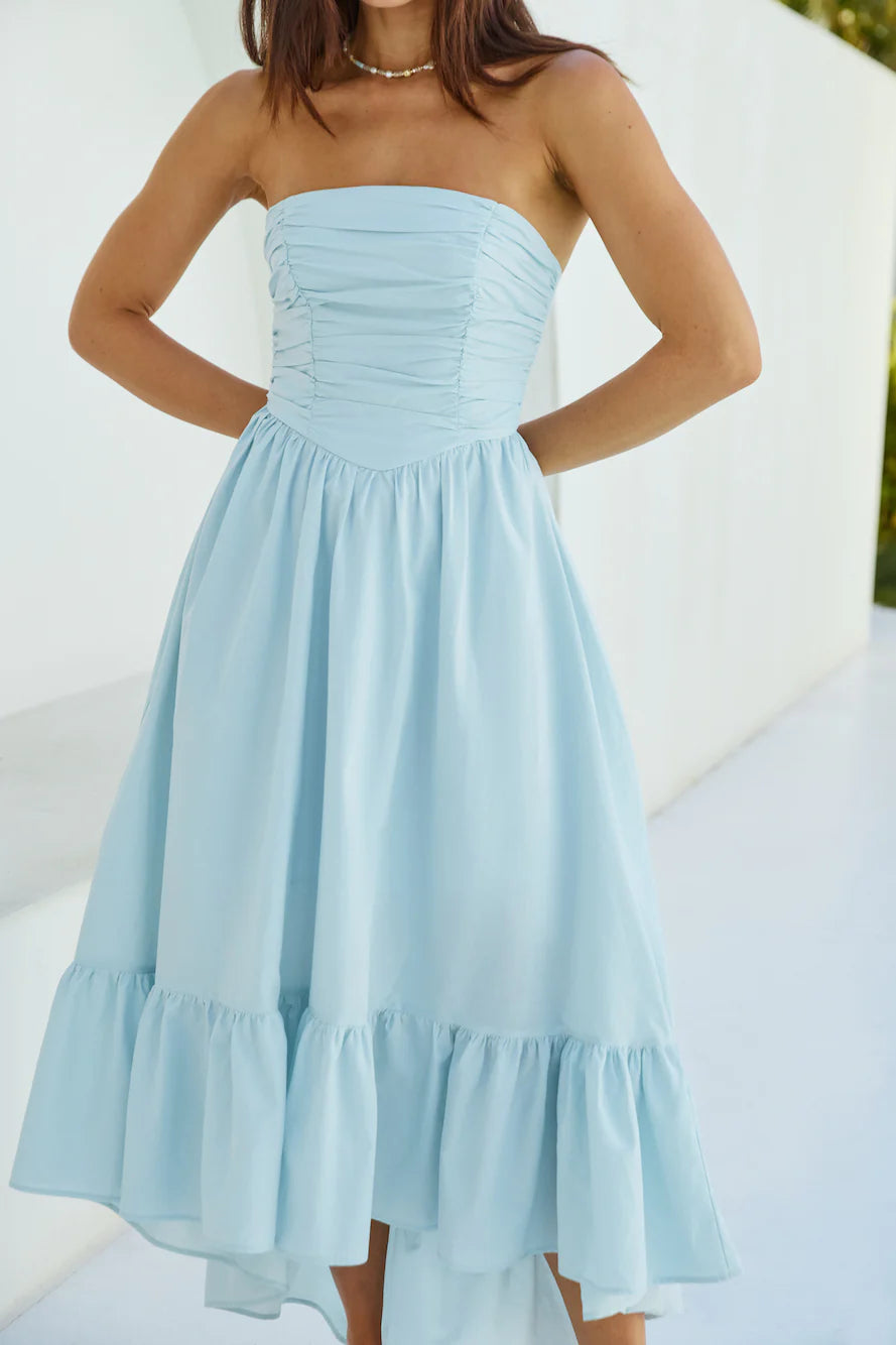 Celebrate summer romance with the Love In The Summer Maxi Dress in Blue. This ethereal dress features a flowing design and soft details, perfect for creating a dreamy, elegant look for any summer occasion.