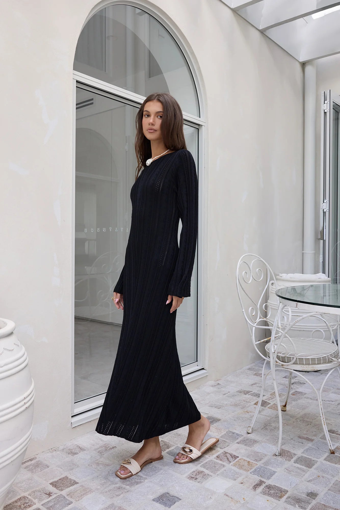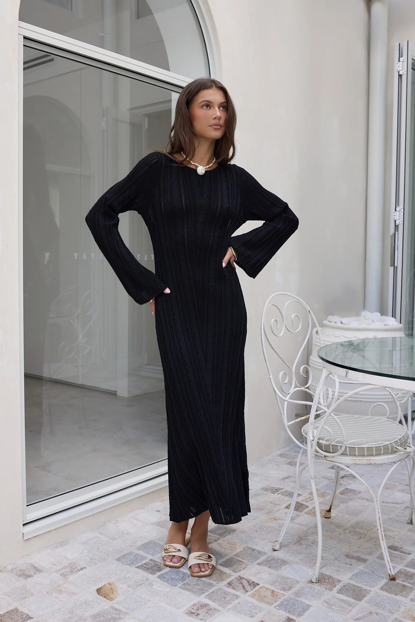 The Love On Holidays Long Sleeve Maxi Dress is sheer romance in motion. With its lightweight knit, elegant long sleeves, and tie-back detail, this flowy maxi is made for sunset garden gatherings. Its sheer design adds a touch of allure while keeping the look effortlessly refined.