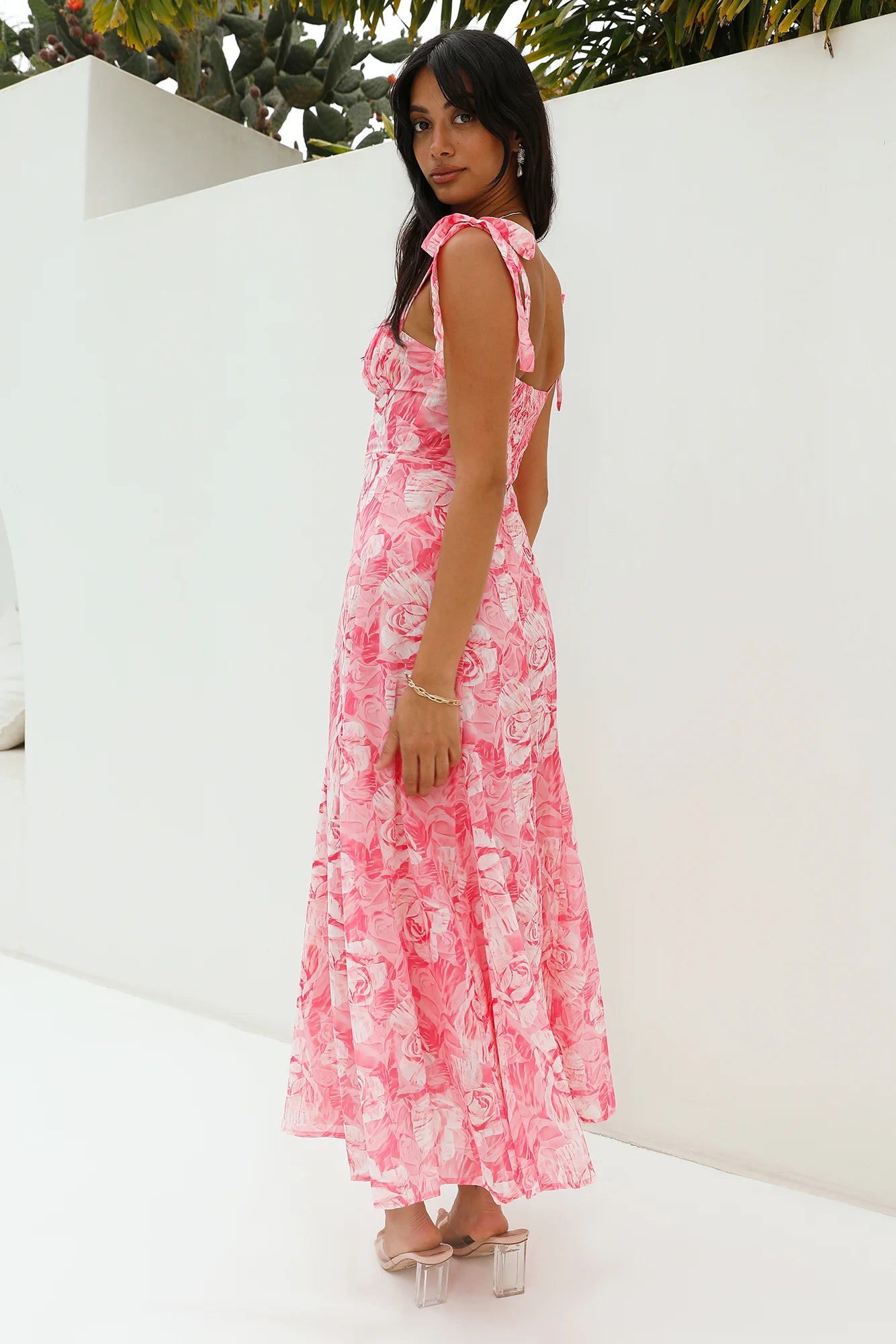 The Lovers Dance Maxi Dress in Pink is a flowy dress perfect for hot summer days exploring the botanic gardens. Pair with white sandals and hair up to show off the stunning features of this dress.