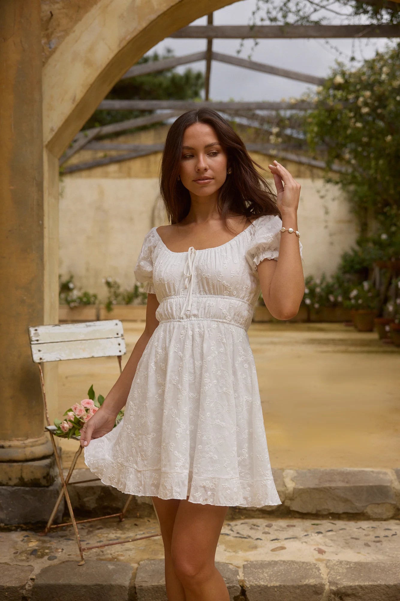 The Lullaby of Lilies Mini Dress is the perfect blend of sweet and chic, designed to elevate your everyday wardrobe. Featuring puffed short sleeves and a rounded neckline, this mini dress offers a feminine and playful silhouette. Adorned with delicate floral embroidery throughout, it brings a subtle charm that’s ideal for casual outings or leisurely Sunday strolls at the market. Short and effortlessly stylish, it’s a go-to piece for relaxed yet polished looks.