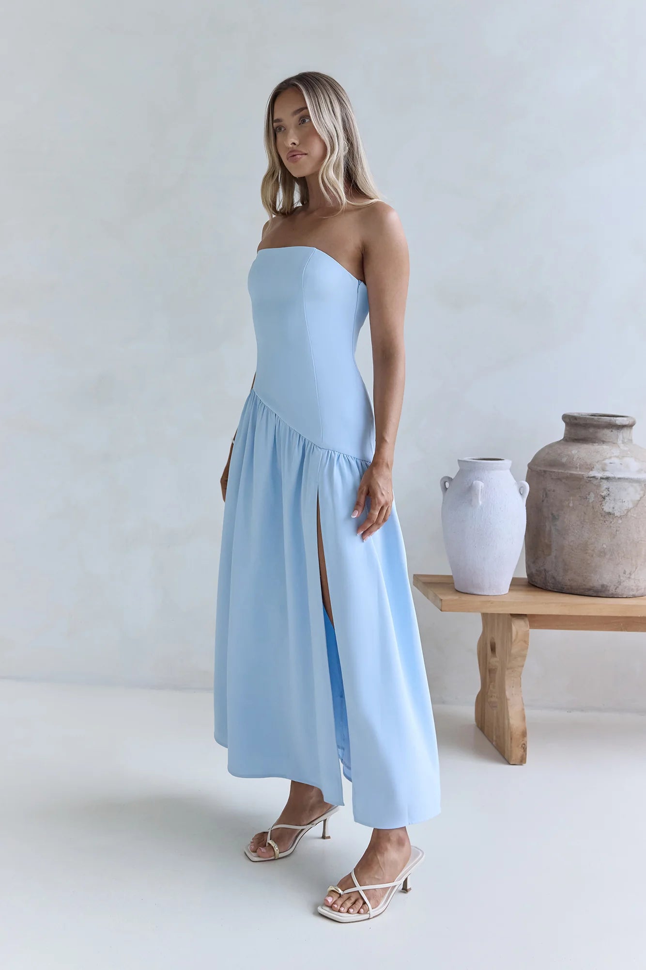 Effortlessly elegant and made to celebrate, the Lunaly Strapless Maxi Dress was made for your next event. Style with mules and gold adornments.