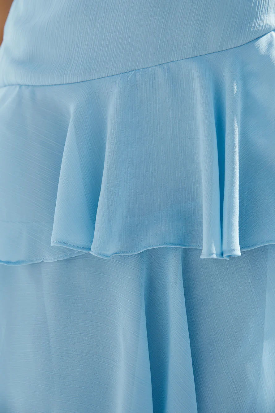 Elevate your summer fashion with our beautiful Maggie Made Maxi Dress in Blue. Crafted from a light and breathable fabric, this dress drapes elegantly for a flattering fit. This dress will instantly make you feel like a princess. Complete your look with soft waves and white heels.