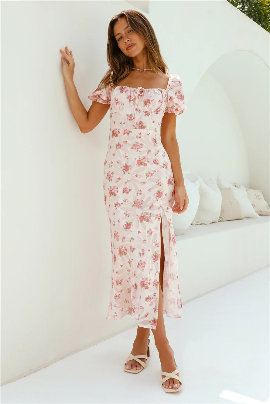 The Making Me Blush Maxi Dress in Pink blooms like a delicate paradise in motion, casting a rosy spell on your sun-kissed skin. Its soft petals and graceful drape evoke the gentle hues of a fruitful garden, creating an enchanting aura of relaxation and elegance in your getaway.