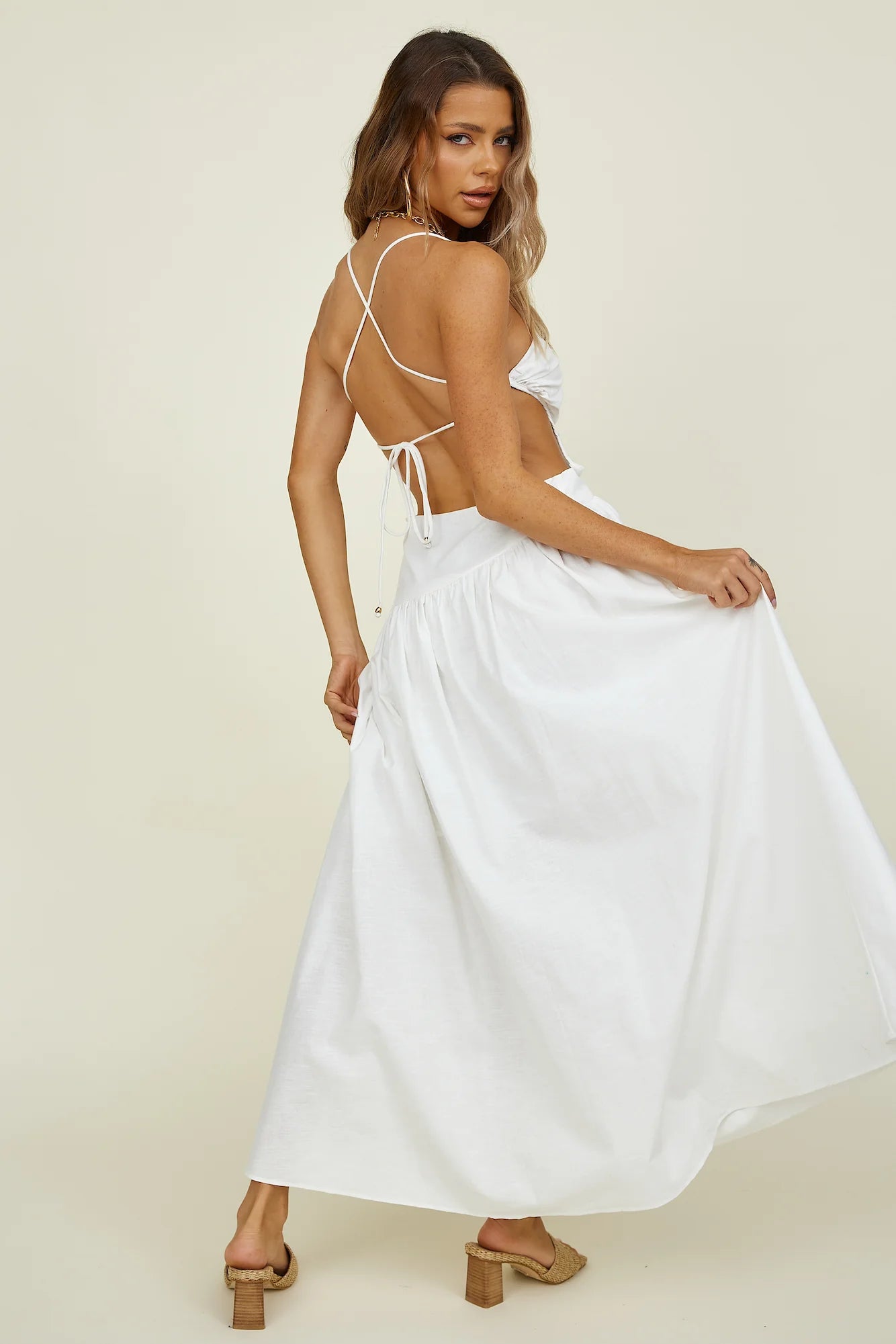 Feel the warmth on your skin and embrace the slow island life in the Marais Maxi Dress! Style yours with lace-up sandals and a straw hat.