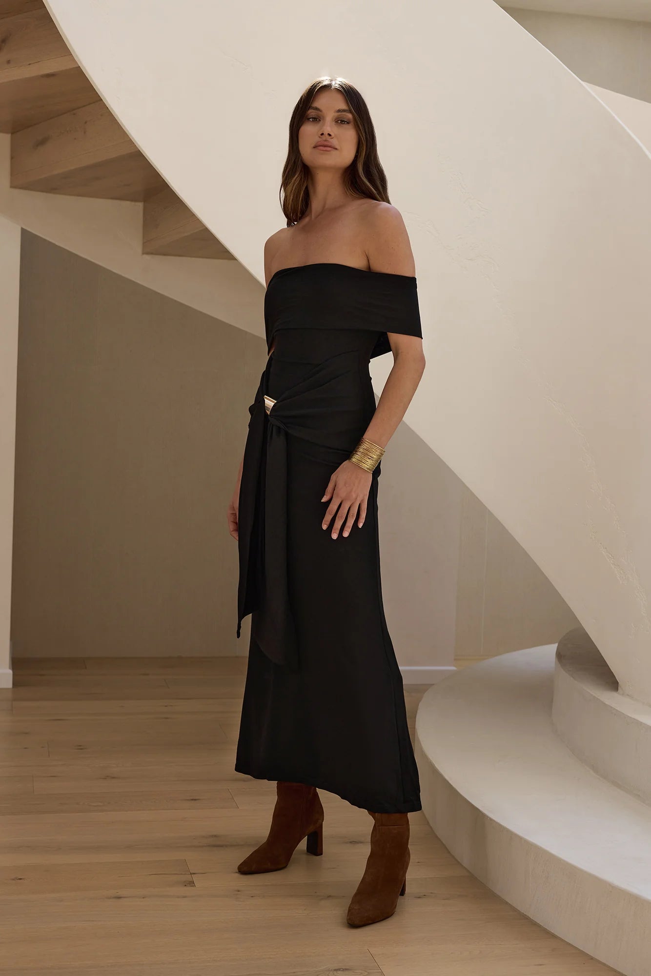 Effortless style is yours with the Martini Bloom Off Shoulder Maxi Dress. The perfect silhouette to take you from day to dusk, style with mules and chunky gold bangles.