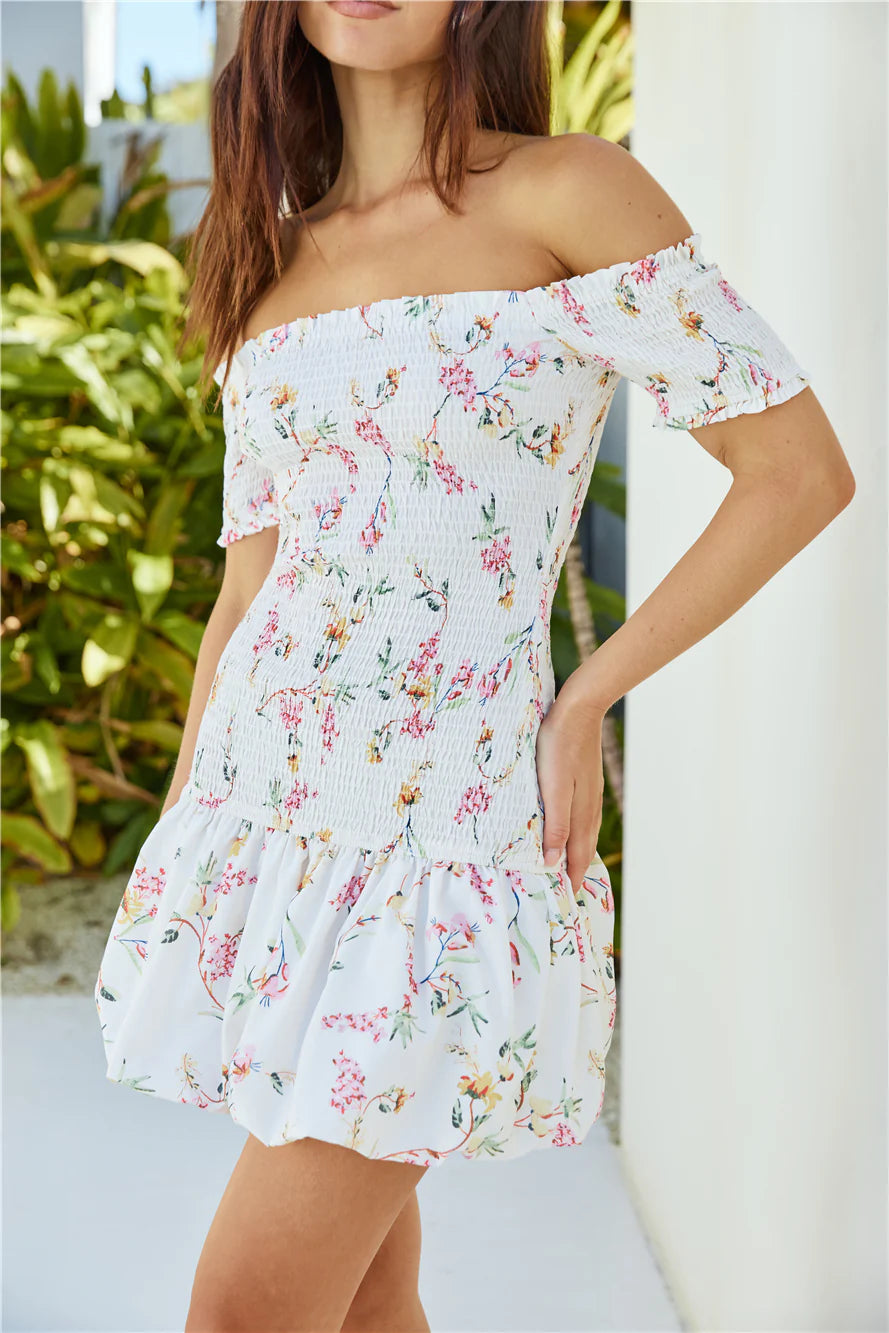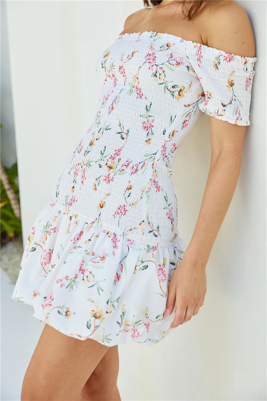 Step into summer with the Mimi Off Shoulder Mini Dress in Beige. This elegant dress features a chic off-shoulder design and a versatile neutral color, perfect for adding a touch of sophistication to your warm-weather outings.