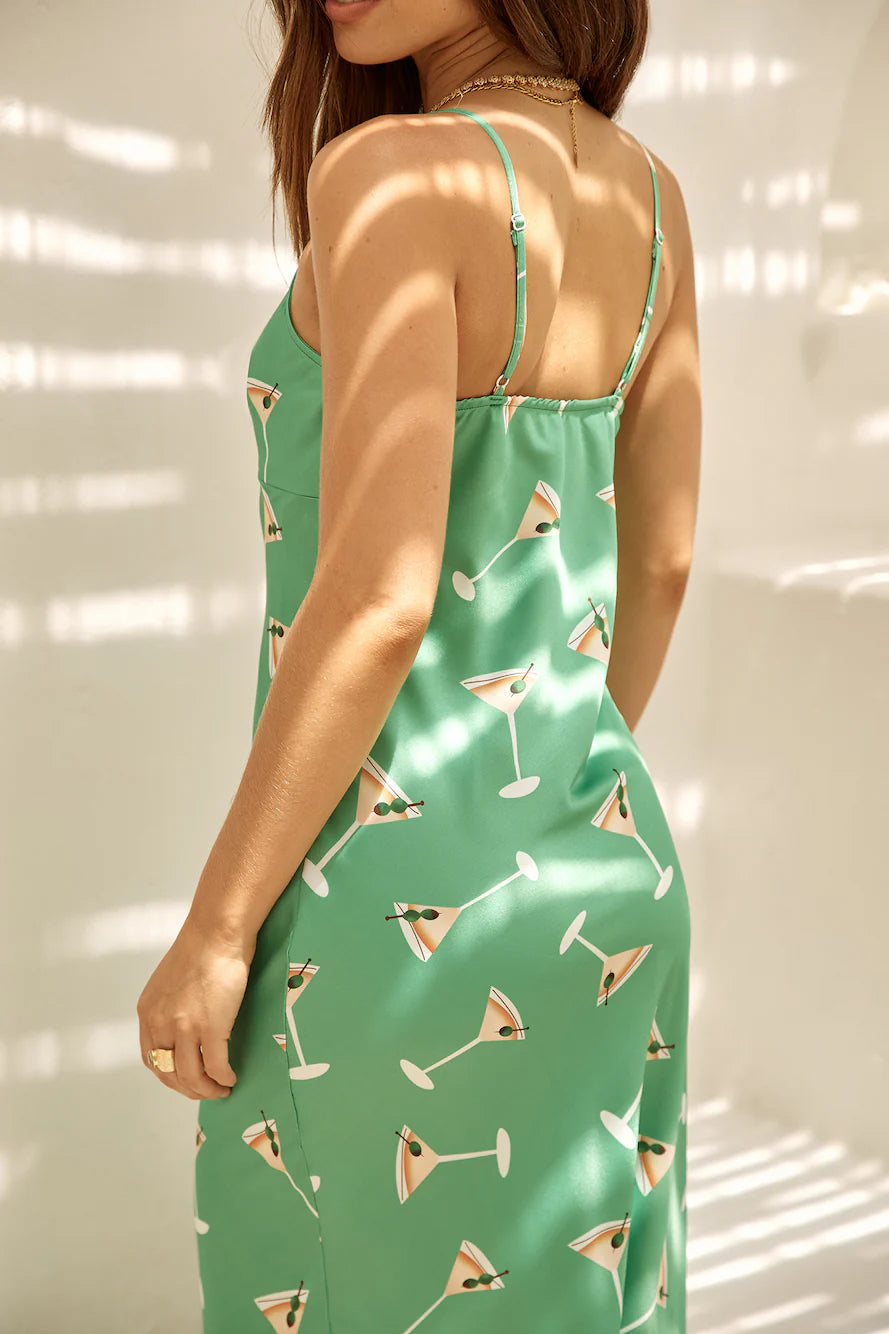 It's always happy hour in a dress like this. The Mood For Martini Satin Maxi Dress in Green is fun, flowy, and here for a good time! Pair with white heels to elevate or sandals for a relaxed vibe and always with an ice-cold drink in hand. Cheers!