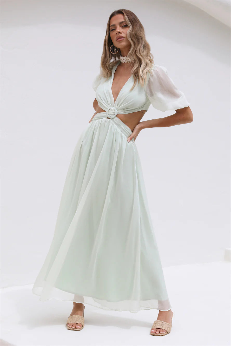 The Ocean Ripples Maxi Dress has us dreaming of summers spent by the beach under the heat of the tropical sun. Style yours with lace-up sandals and gold adornments.