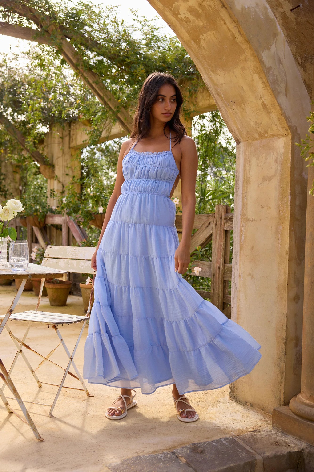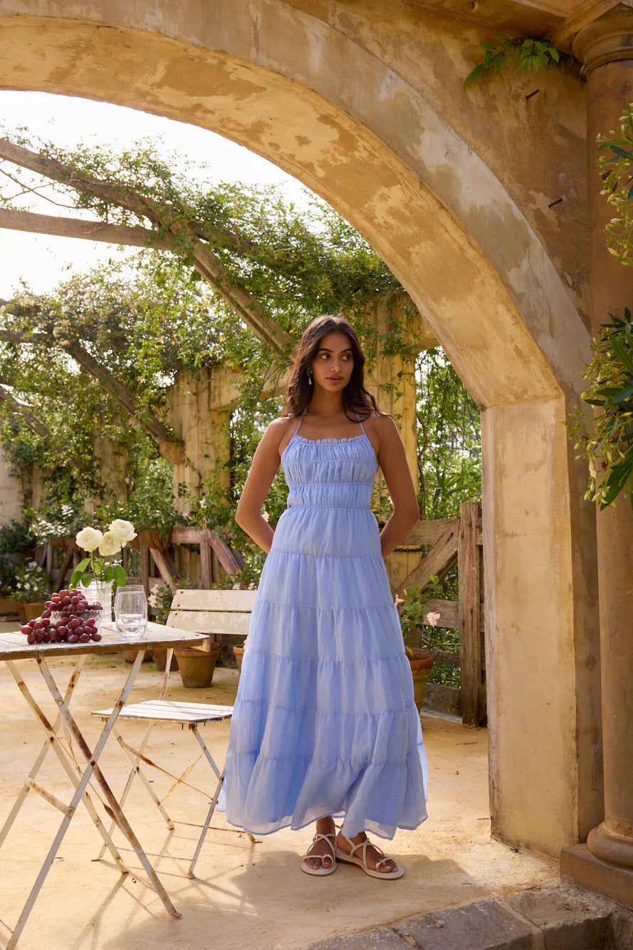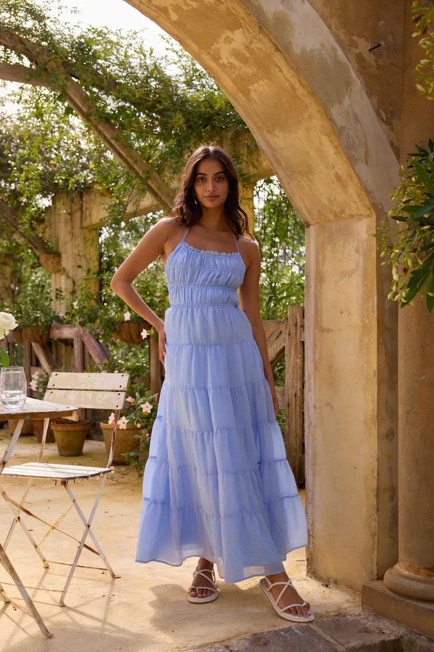 The On a Cloud Maxi Dress in Blue is a breezy, effortless piece perfect for warm, sunny days. With its soft, sky-blue hue and tiered design, this maxi dress flows gracefully, creating an ethereal look. The lightweight fabric and delicate straps make it comfortable and easy to wear, while the relaxed fit adds a touch of casual elegance. Style it with sandals for a daytime look or dress it up with accessories for an evening out—either way, you’ll feel like you’re floating on a cloud.