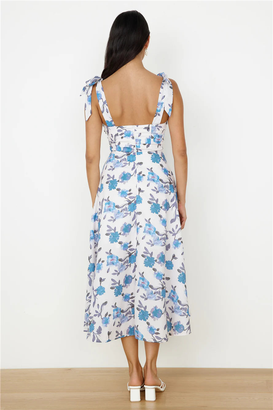 People watch and soak up the sun in the On The Roof Midi Dress in Blue. This stunning dress is made for moments of serenity and taking in the beautiful views of your destination.