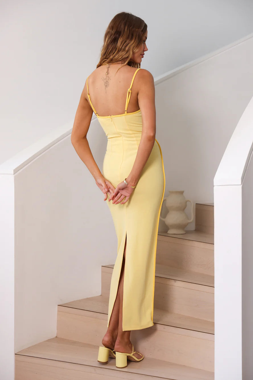 The statement dress you've been looking for. The On The Way Maxi Dress is a sleek yet bold dress for your next holiday. Pair with white heels and gold adornments.