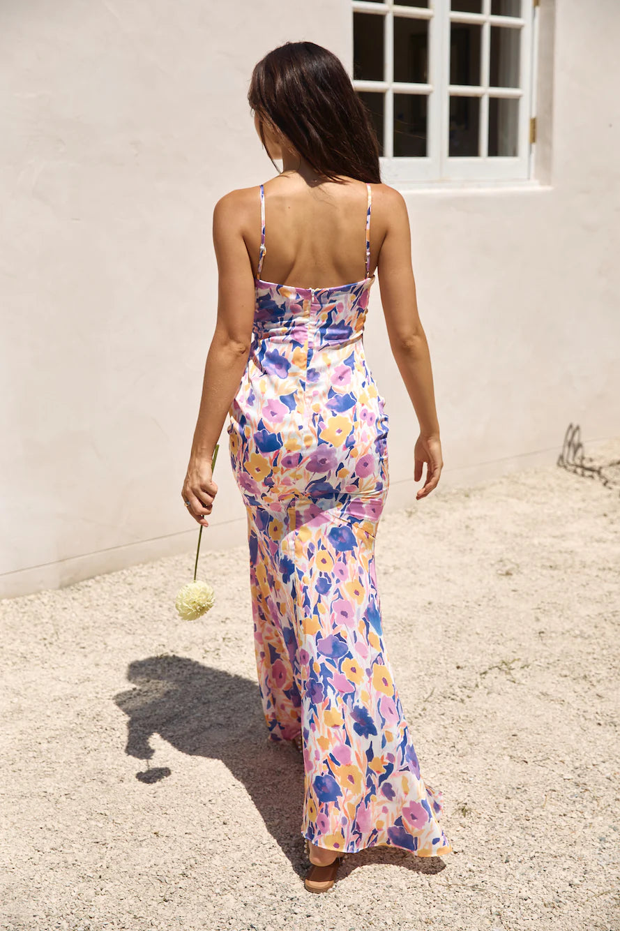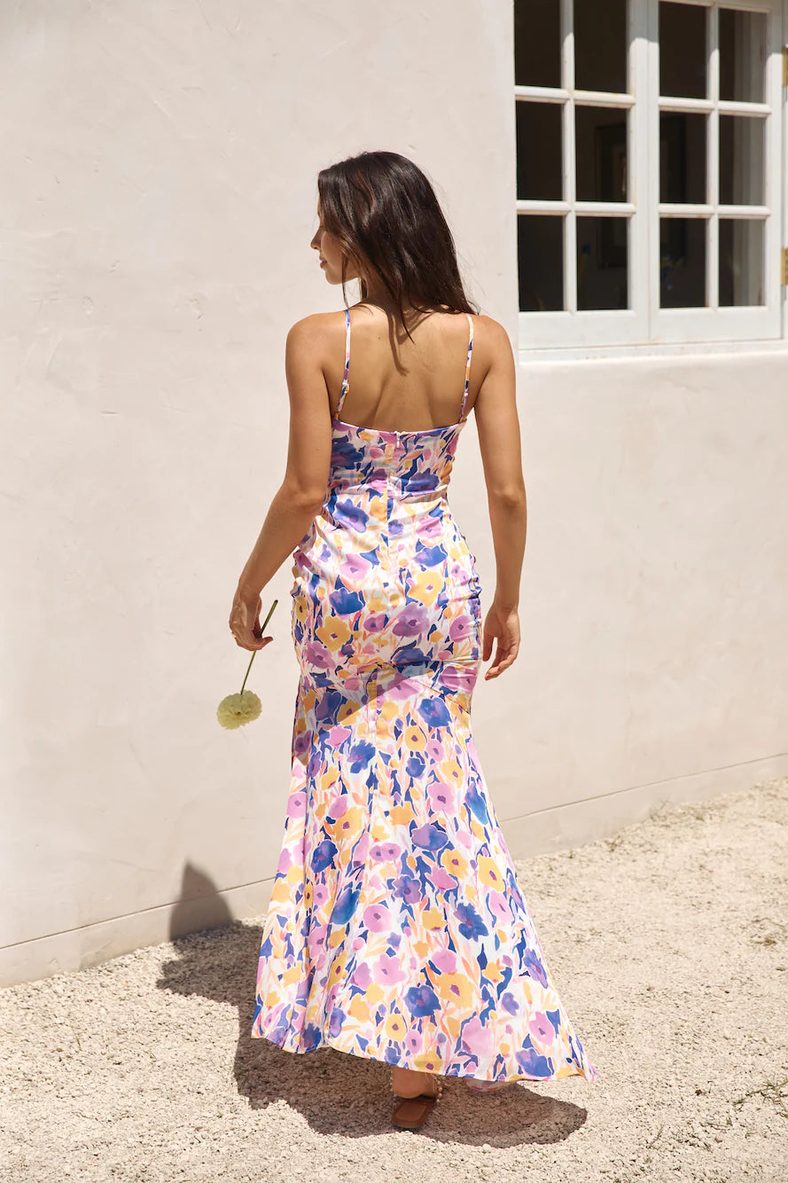 With fabric painted like the warm hues of a radiant sunset, the On Your Wishlist Satin Maxi Dress in Multi us a cascade of warm colours that capture the dreamy essence of dusk. This ethereal ensemble is an invitation to twirl under the evening sky on your tropical vacation. Style with tan sandals and loose waves to allow for ultimate comfort.