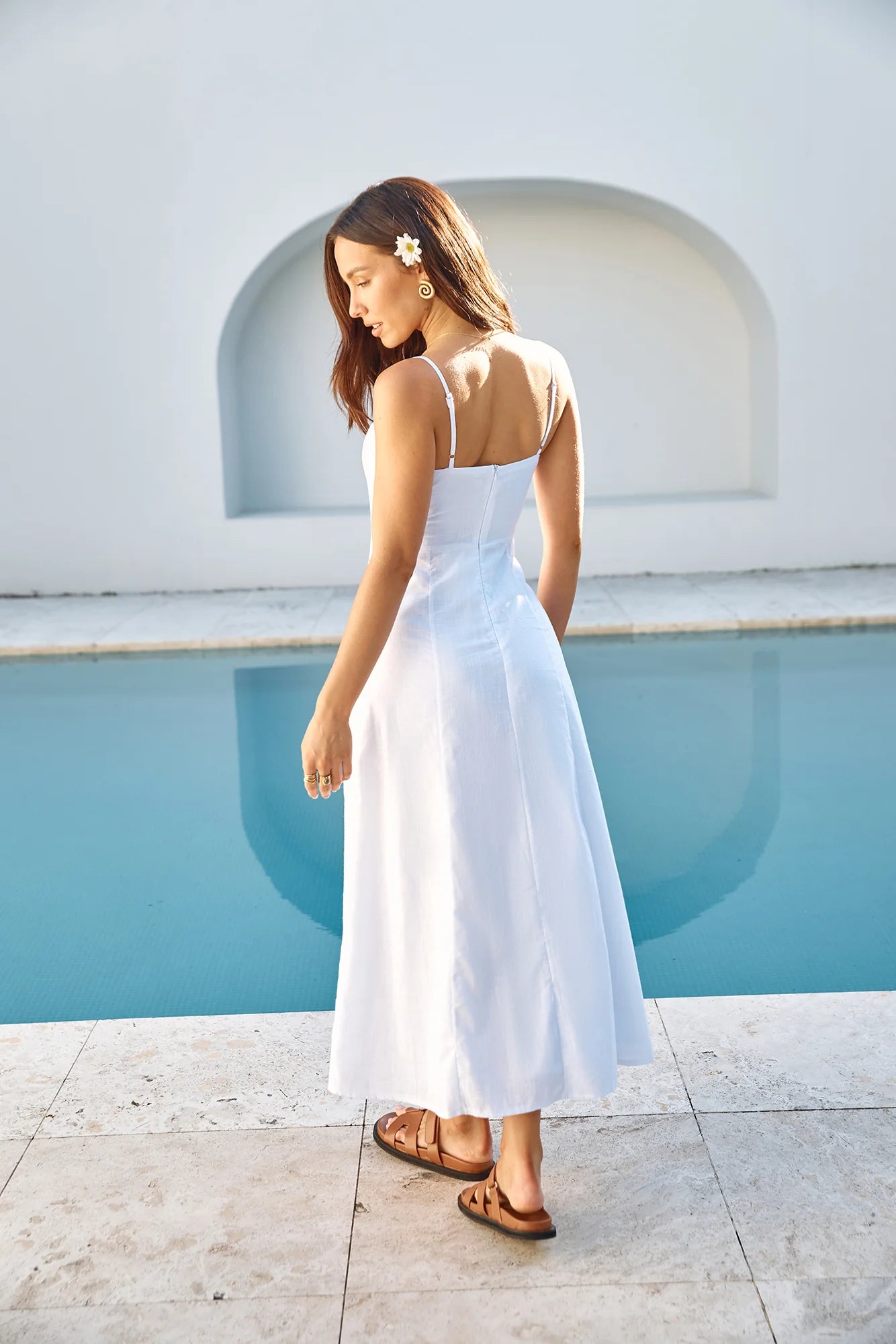 The Party Invites Midi Dress in White is your perfect summer statement piece, featuring a flowing silhouette and elegant design that effortlessly captures the essence of warm-weather sophistication. Ideal for beach vacations or garden parties, this dress combines comfort with chic style, ensuring you shine on every occasion. Style with the .