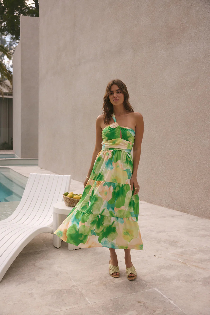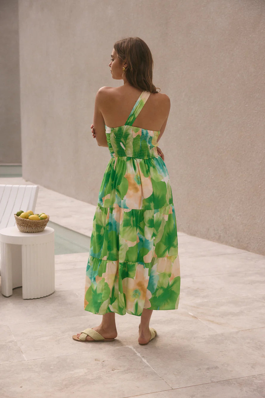 Feel the ocean breeze flow through you in the Pure Satisfaction One Shoulder Maxi Dress in Green. With billowing features and textures that make you feel like you're floating, this dress makes for a perfect summer night companion no matter your agenda. Pair with white heels and hair slicked back to compliment the dress.