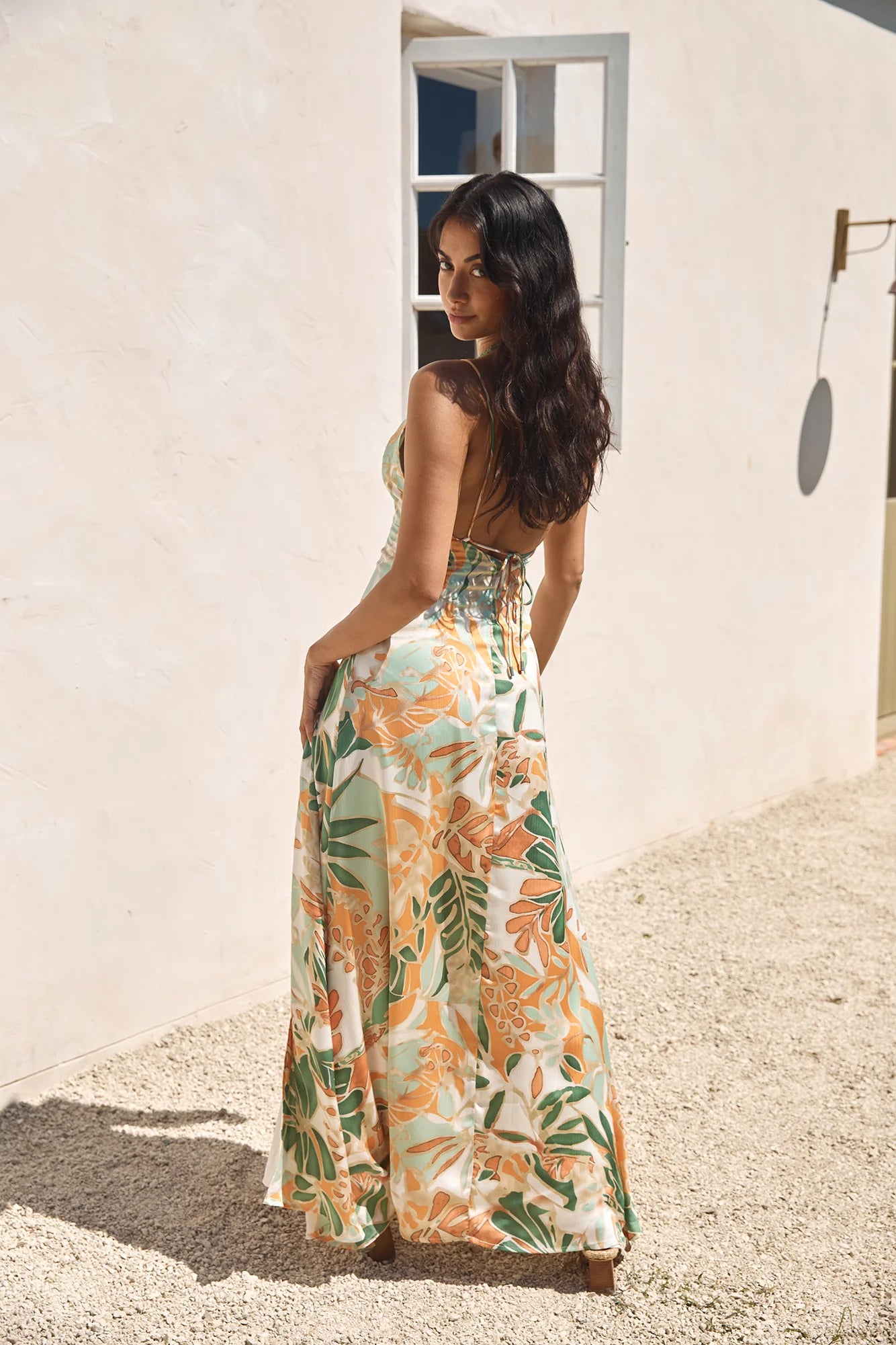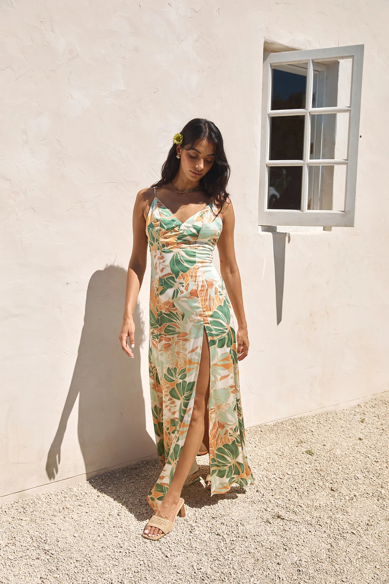 Emanate the vibrant allure of a tropical rainforest with the Rainforest Glow Maxi Dress in Green, a stunning and flowing garment that captures the essence of lush greenery, ensuring you radiate natural elegance and captivating beauty wherever you go. Style with tan heels and gold adornments to complete the look.